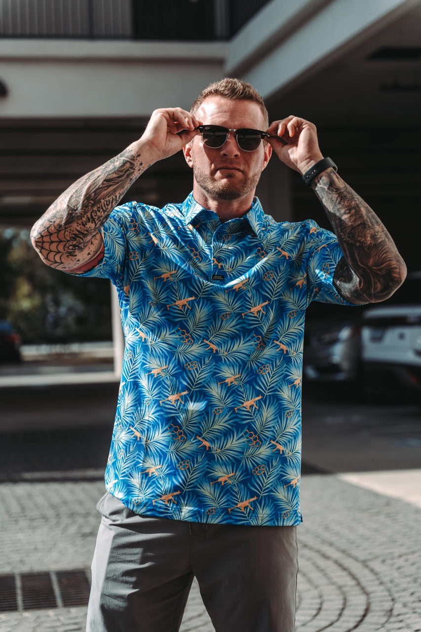 The Gangsters Paradise Performance Polo delivers unmatched comfort and sharp style whether you’re crushing 18 holes or chasing shots of Jameson with pickle juice at the neighborhood block party. Engineered with a moisture-wicking, wrinkle-resistant 4-way stretch fabric, it keeps you cool and agile while blocking harmful rays with UPF 30 protection. Made from a blend of 90% polyester and 10% spandex, this lightweight, breathable polo features a relaxed fit and three color-matched pearlized buttons for a sleek, confident look. Own your game with attitude and performance.