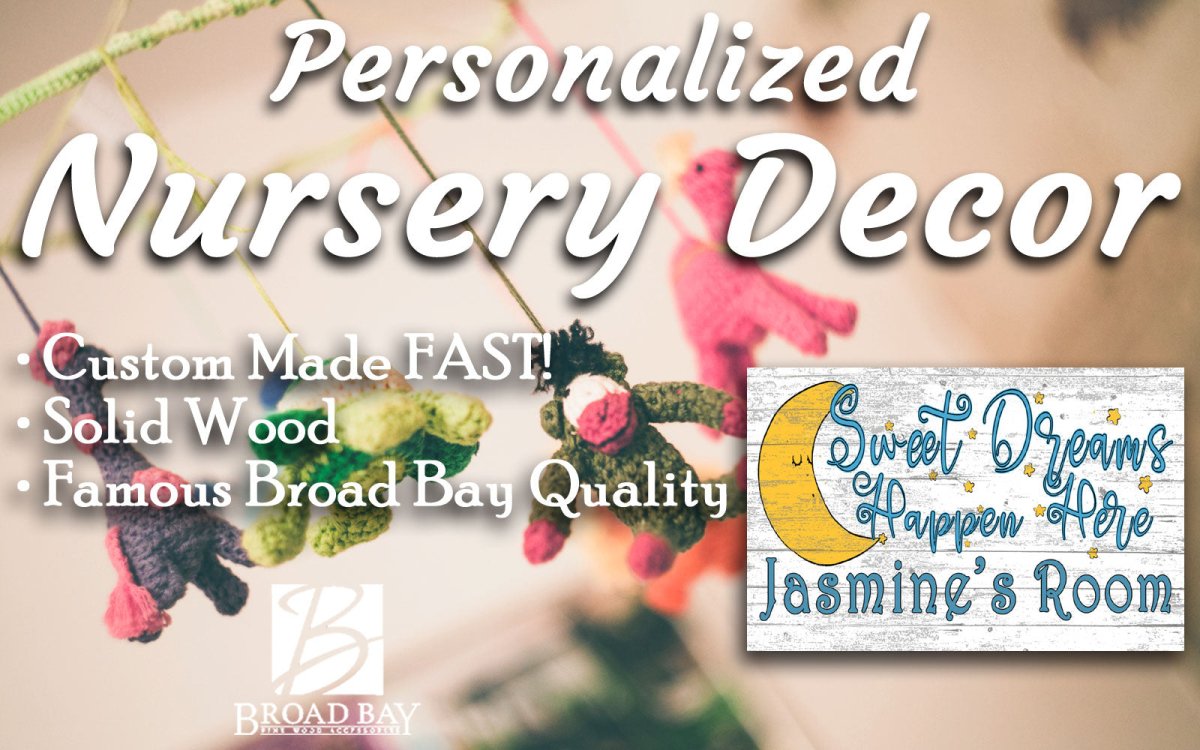 & Delivered in 2 BUSINESS Days!! -This wonderful, farmhouse-style Children's Room wall art gift is the perfect, unique gift for any family. This top-quality, customized nursery sign keepsake will be cherished for years to come. The rustic, farmhouse-style Sweet Dreams design is carefully applied to the wood in a unique process developed by Broad Bay. Personalized with the child's name, this special children's sweet dreams decoration looks great in any child's bedroom decor.