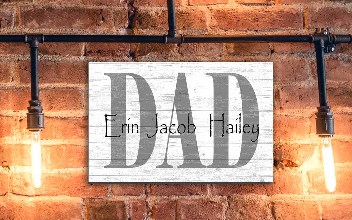 Surprise Dad with a custom wood sign that says it all—literally. Featuring a bold “DAD” design in the background and your children’s names across the front, this heartfelt gift is the perfect way to remind him every day how loved he is. Whether for Father’s Day, his birthday, or just because, it’s a personalized keepsake he’ll be proud to hang at home or in the office.