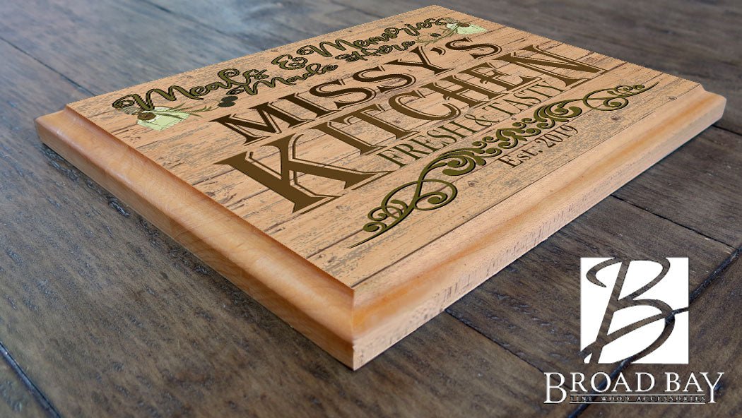 This Broad Bay personalized kitchen sign is the perfect unique personalized gift idea for her or him. The vintage kitchen design is personalized and printed on solid wood. Carefully crafted in the United States from solid maple wood this unique custom-made rustic kitchen name hanging wood sign will be cherished for years to come and proudly displayed in any kitchen decor. The personalized artwork is carefully applied to the solid maple wood in a unique process developed by Broad Bay to allow the beauty of the wood to show through the customized kitchen name design. Personalized with the kitchen chefs name, this vintage look kitchen gift is the perfect personalized gift for Christmas or any occasion!