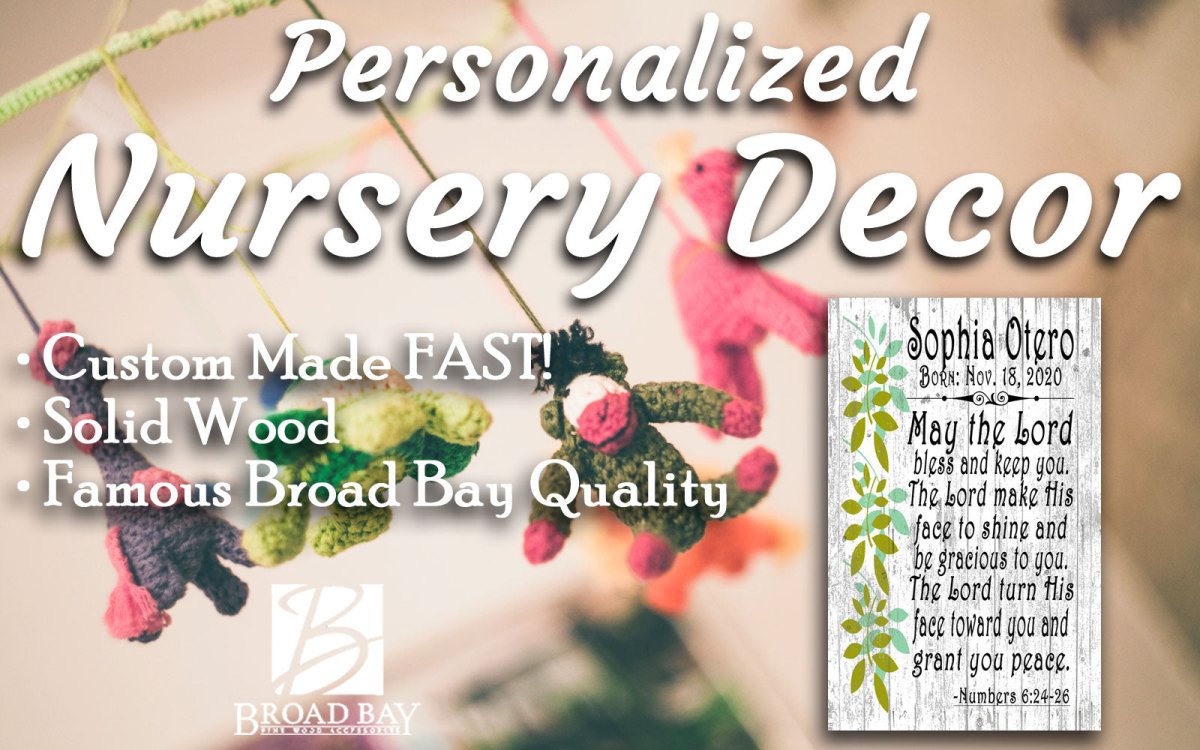This wonderful, nursery or child's room wall art blessing is the perfect, unique gift for any family with children. This top-quality, customized sign is a great keepsake that will be cherished for years to come. The rustic, farmhouse-style Numbers 6:24-26 bible verse design is carefully applied to the wood in a unique process developed by Broad Bay. Personalized with the child's name and their date of birth, this special gift looks great anywhere in the home!