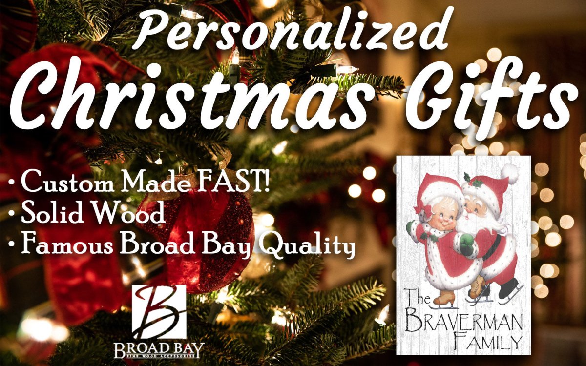 This wonderful wooden farmhouse style Vintage Mr & Mrs Claus Skating Sign is personalized with your family name. Make great holiday memories with a new Christmas season tradition of proudly hanging this special custom-made solid wood Santa Sign in your home each holiday season! This vintage, traditional style Santa Clause wood sign makes a great Christmas gift for your own family or any special family on your holiday gift list. Broad Bay uses only real, solid wood in the creation of our unique personalized Christmas signs so they can be passed down to future generations.