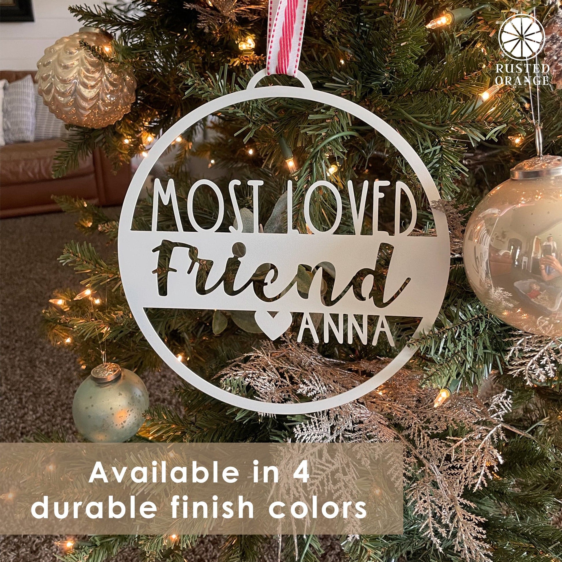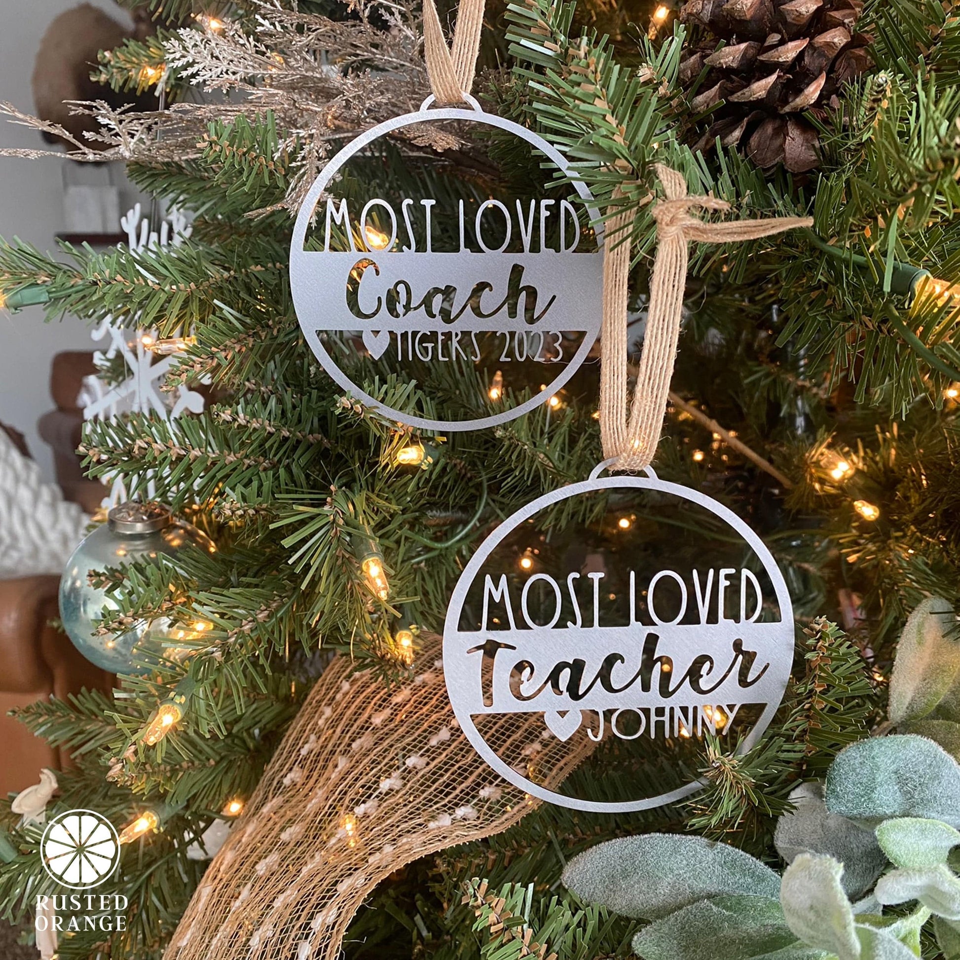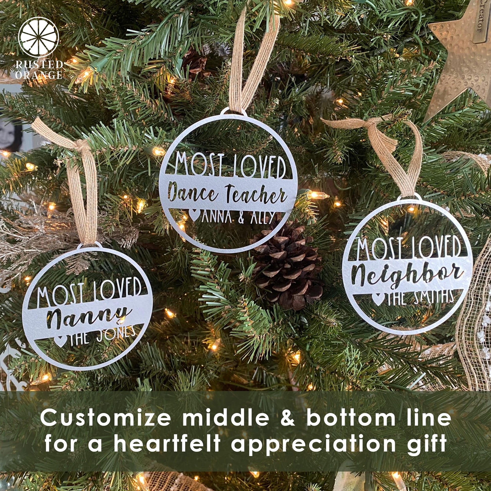 Give the gift of heartfelt appreciation with our customizable metal ornament, a truly versatile keepsake that speaks volumes. Designed to honor and celebrate the important people in your life, this special ornament allows you to add your own unique touch, elevating it from a simple gift to a cherished memento. The ornament features the timeless words "Most Loved," which are then followed by two customizable lines to make your message even more personal. With up to 14 characters for the middle line and 12 characters for the end line, the customization possibilities are almost endless. This makes it not just one of the best teacher Christmas ornaments available, but also a deeply touching gift for your boss, family members, or friends. Each ornament is crafted from high-quality metal, ensuring a long-lasting and durable gift that can be enjoyed year after year. And it's not just for Christmas—this is an all-season gift that fits every occasion from teacher appreciation days to retirement parties. Each ornament can carry its own distinct message, making it an ideal choice for employee Christmas gifts ideas or daycare teacher gifts appreciation. To further enhance its beauty and longevity, we offer optional powder coating in three elegant shades: black, silver, or white. Not only does the powder coating improve the ornament’s aesthetic appeal, but it also adds an extra layer of rust resistance and durability. This makes your ornament ready for any storage or environmental conditions, a key consideration when choosing holiday teacher gifts or ornaments for dad. So, whether you're looking to express gratitude to a dedicated nurse, recognize a hard-working student, or just say 'thank you' to someone special in your life, this customizable metal ornament is the ideal solution. It's perfect for various celebrations like end of the year gifts for teachers, holiday gifts for teachers, or as a mother in law ornament. It's a one-size-fits-all solution for showing appreciation.