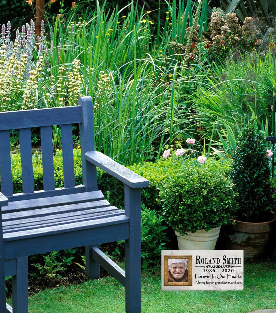 This Forever In Our Hearts marble memorial plaque is a meaningful tribute to a loved one’s memory. Printed in the USA on imported solid marble using a proprietary process, this custom remembrance stone includes your photo, name, dates, and a personalized message. A beautiful sympathy gift for family or a lasting piece for a memorial space.