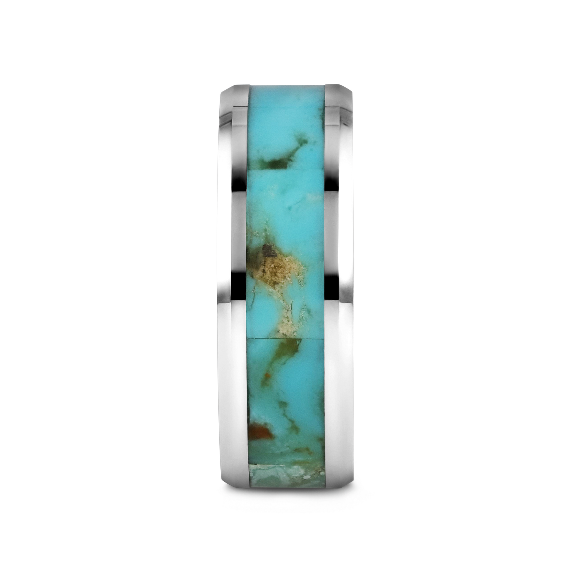 PIERRE Men’s Polished Tungsten Wedding Band with Light Blue Turquoise Stone Inlay & Polished Beveled Edges - 8mm
