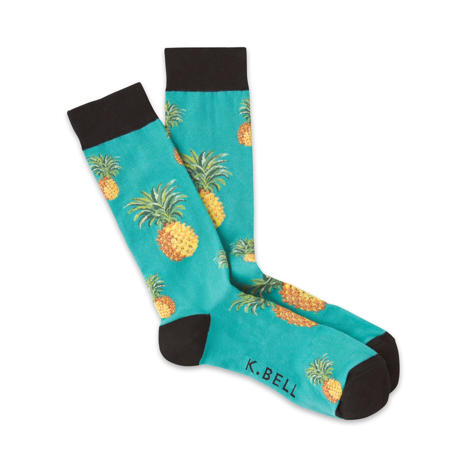 Are you a fan of all things pineapples? Then these funny mens novelty crew socks were made for you! Each zany pair features this popular and delicious tropical fruit printed all over against a relaxing teal background. Gift these refreshing socks to the pineapple lover in your life!