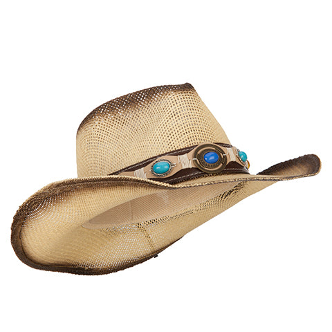 Pleather Precious Stone Accented Straw Cowboy Hat