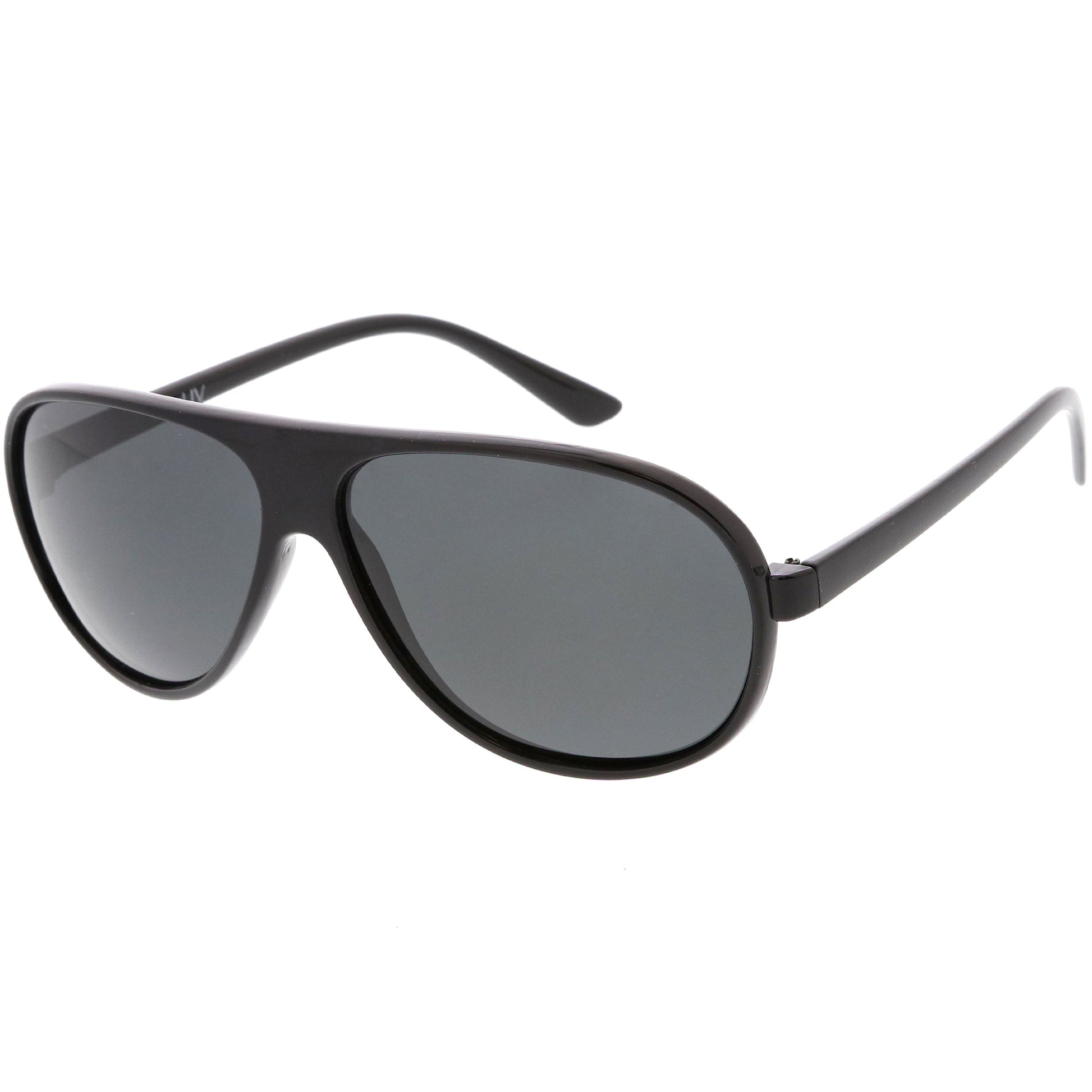 - A great style for outdoor adventures and activities, these polarized aviator sunglasses are designed with an oversized frame, flat top design, and slim arms for a classic aviator look. Complete with neutral colored polarized lenses that reduce glare, these polarized aviator sunglasses are ideal for this summer season. Made with a plastic based frame, reinforced metal hinges, and 100% UV protected lenses.