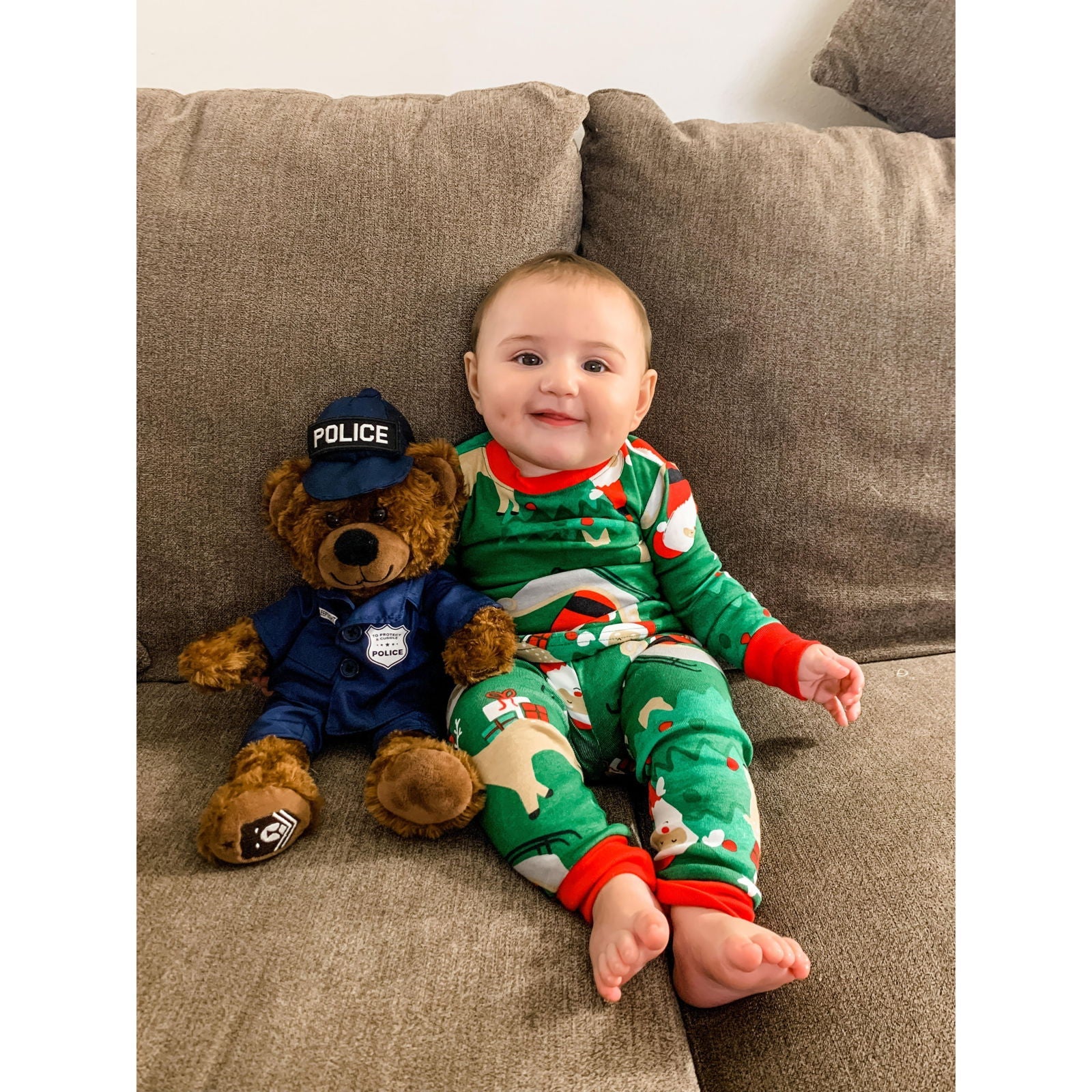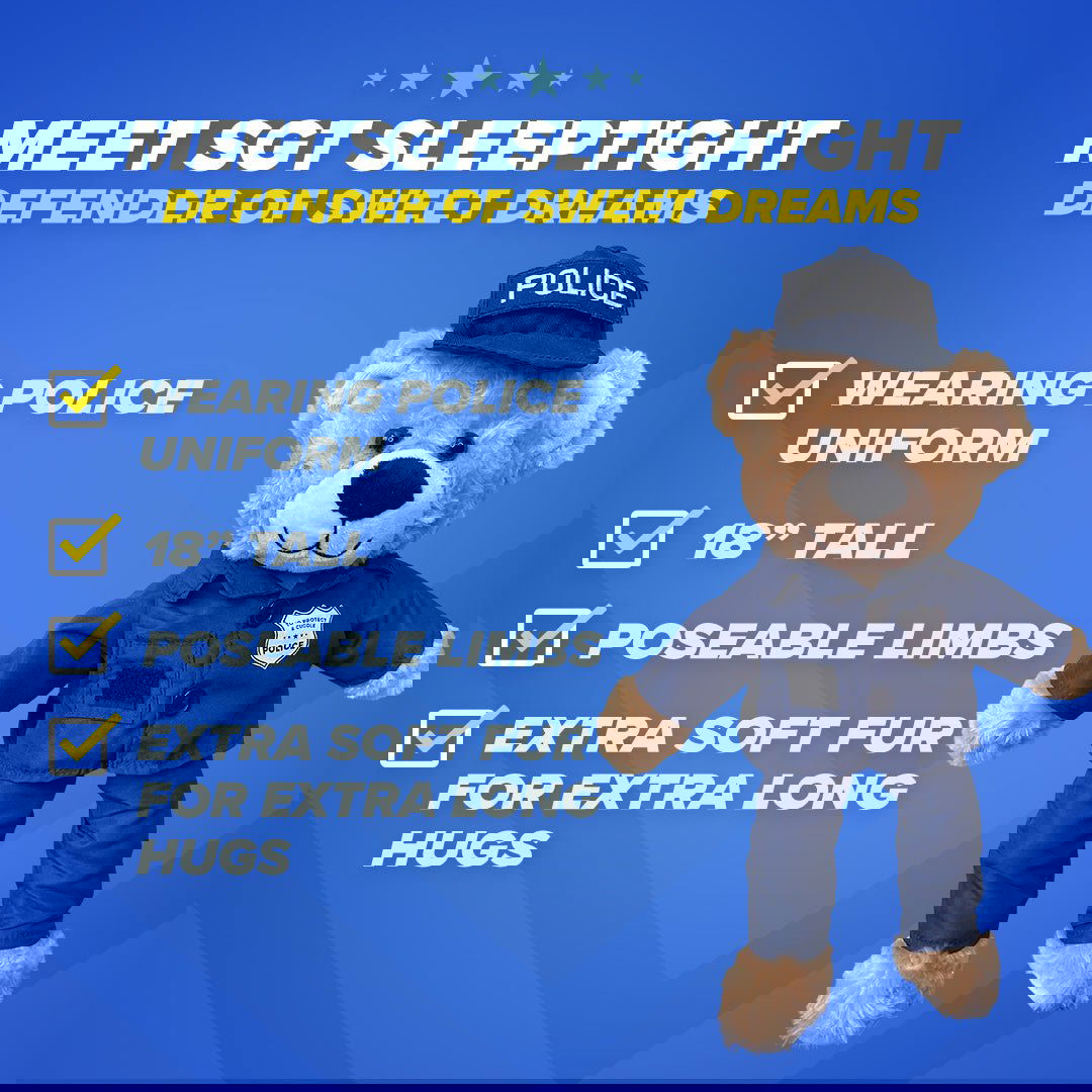 "This super cute police bear is my son's favorite snuggle buddy on those long nights when our officer is on duty." - Kaila O 💙💙💙