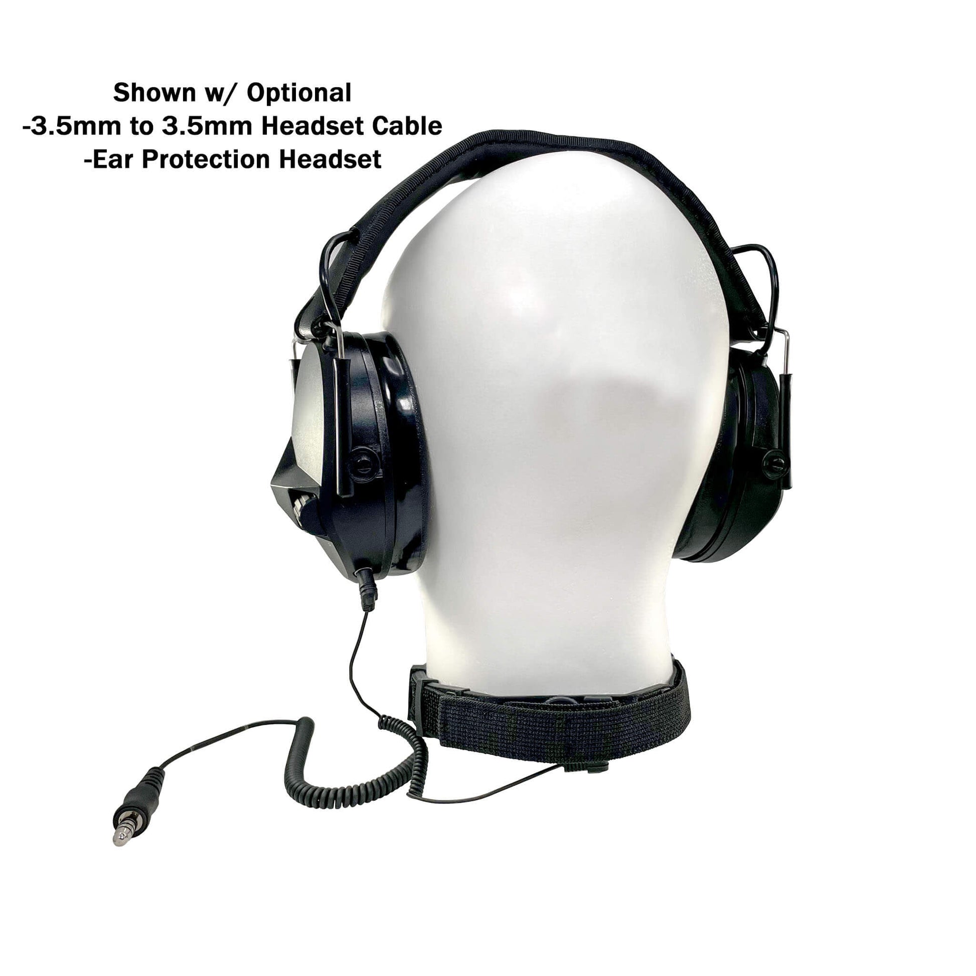 There is a removable acoustic tube earpiece for radio monitoring. Option to add Decibullz Isolation Ear Plugs, compatible with this kit’s acoustic tube, perfect for high noise environment. As well as a 3.5mm audio out jack, perfect for incorporating a hearing protection headset w/ an Audio Input Cable. This would allow you to transmit via the Throat Mic but receive all audio through your hearing protection headset.