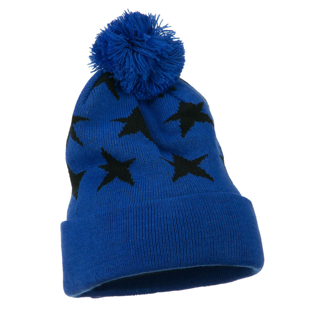 Pom Pom Stars Long Cuff Beanie