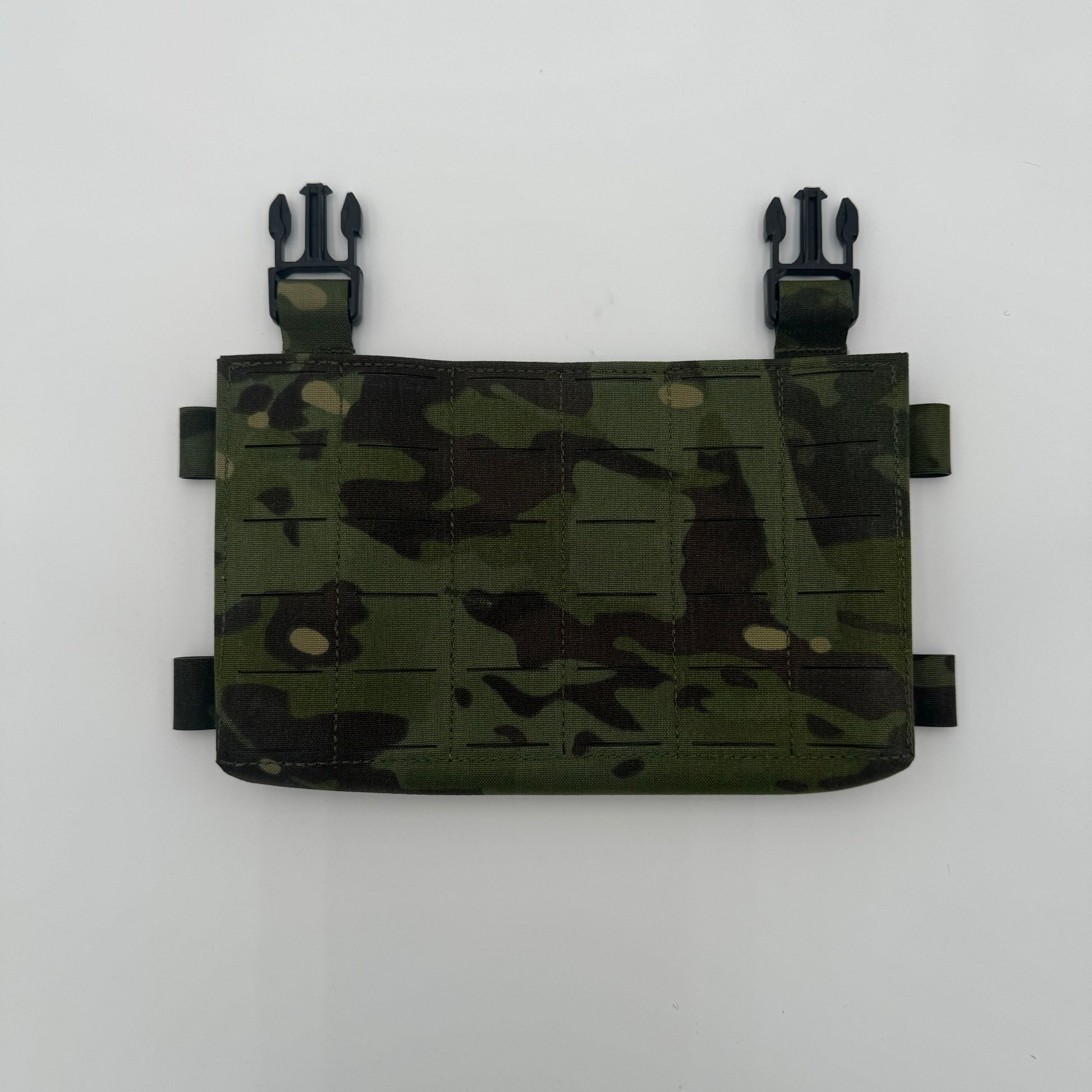 At the core of the MAC-V system is the primary placard. Made completely from B52 500d laminate material it is compatible with all our chest rig components as well as other swift clip attachment style plate carriers. It can be used with triple 5.56mm, double .308cal, and quad mag sub-gun inserts.