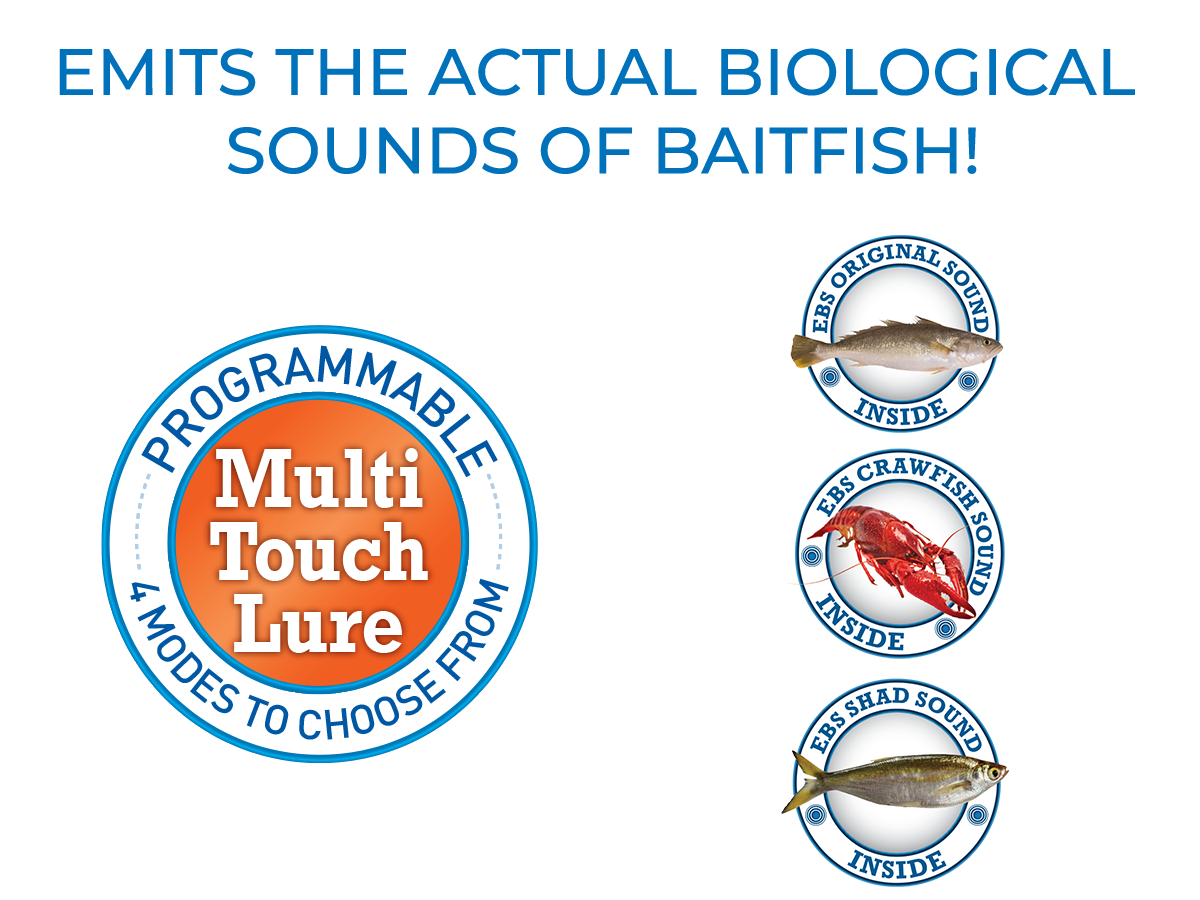 The PRIMETYME SQ 2.0 features a thin, circuit-board square bill that creates a wicked "hunting" action. Fish in the 4- to 6-foot range can't resist! You also have the attraction of EBS MultiTouch TechnologyTM. That means you can change the sound of the bait to fit the situation and draw fish from double the distance of traditional lures.