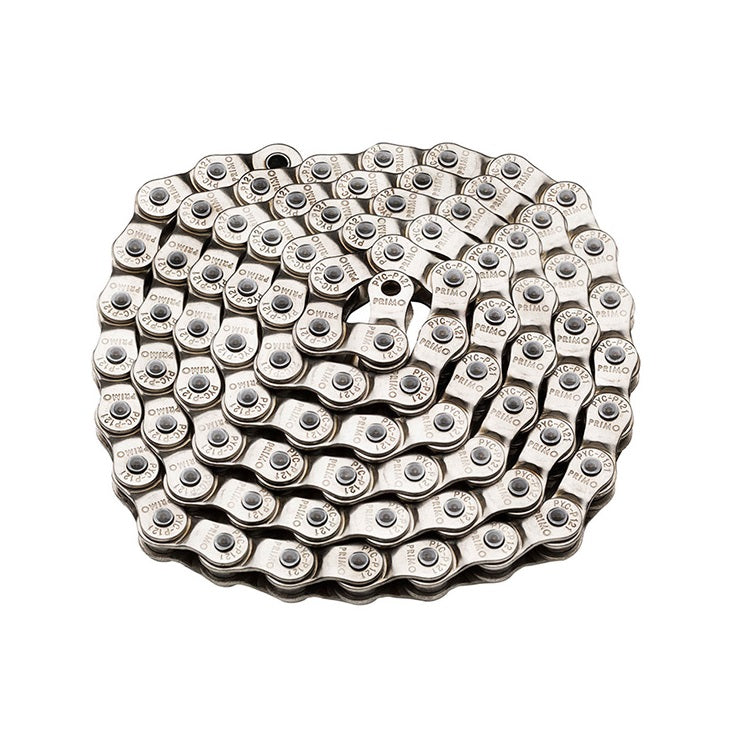 The 121 Half-Link Chain is heat-treated and engraved with the Primo logo. The half link design makes more precise rear end length adjustment possible.