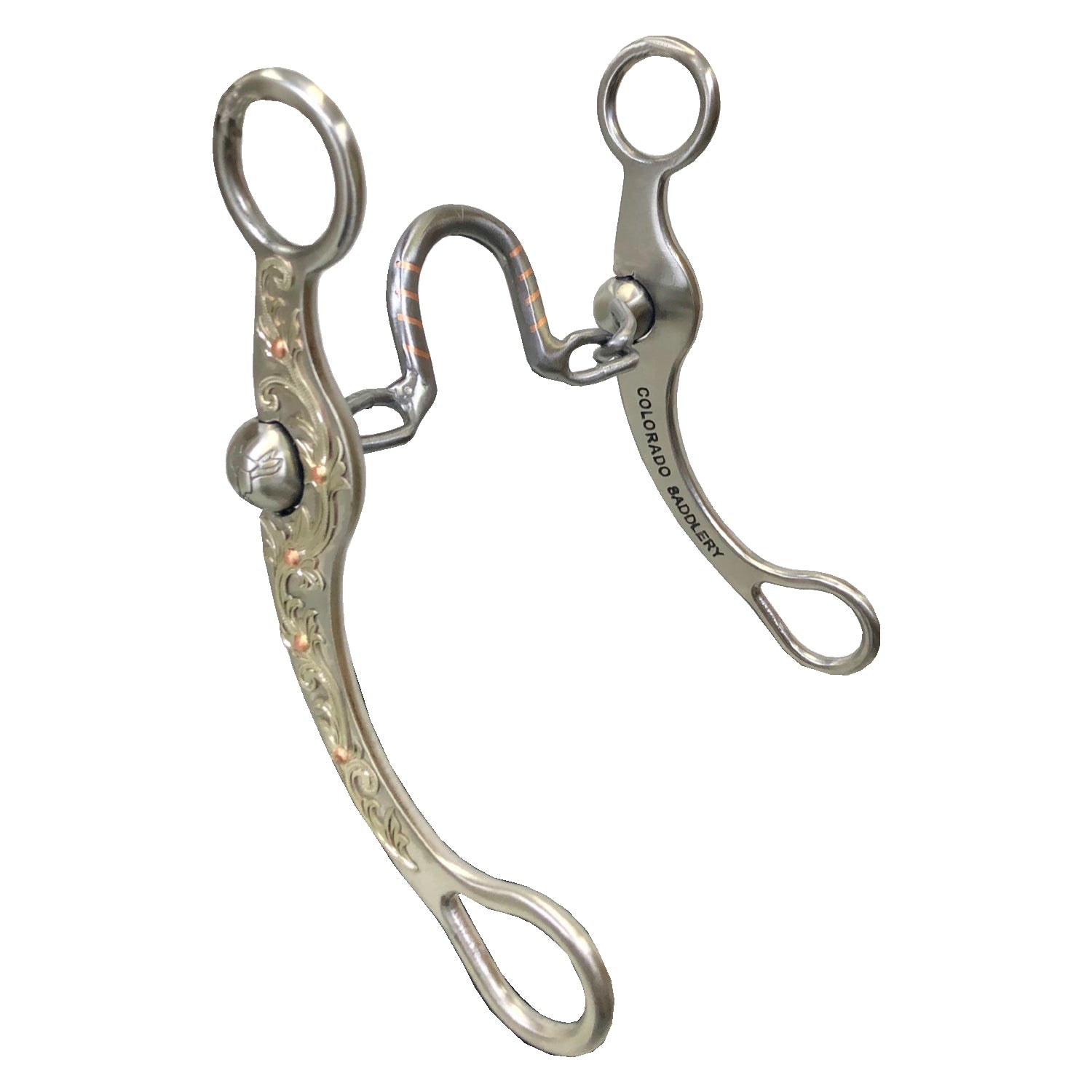 The Pro Series Bits are sturdy and comfortable for the horse. They have no-pinch cheeks with a smooth sphere sporting the Colorado Saddlery Logo.
