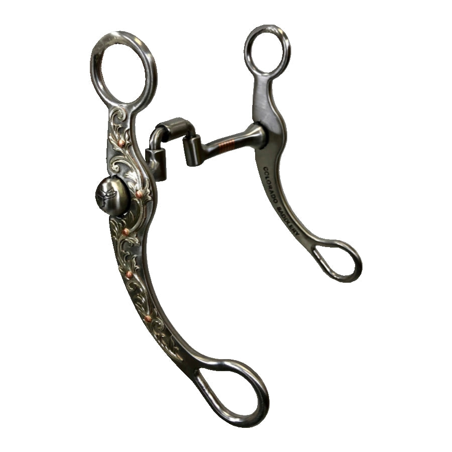 The Pro Series Bits are sturdy and comfortable for the horse. They have no-pinch cheeks with a smooth sphere sporting the Colorado Saddlery Logo.