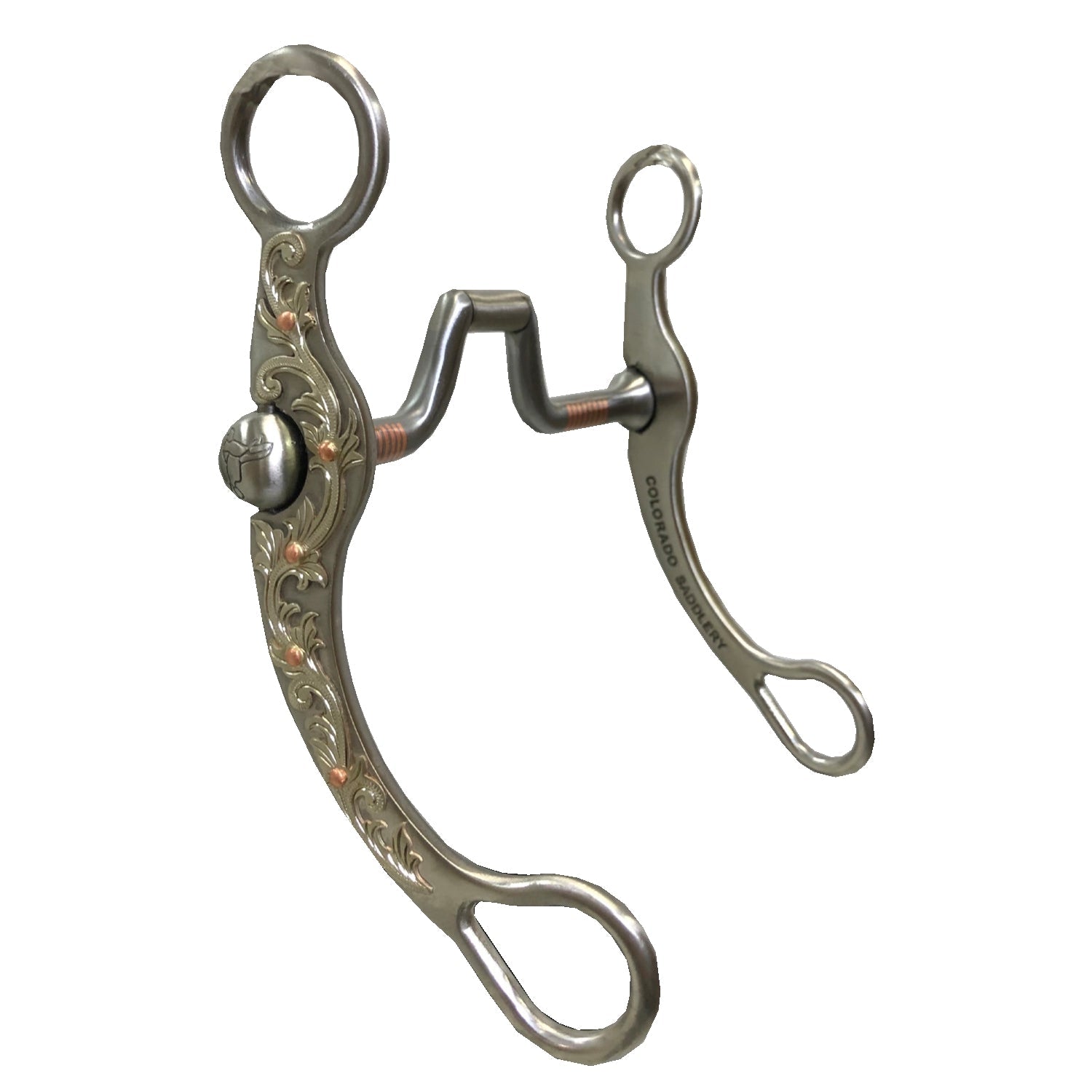 The Pro Series Bits are sturdy and comfortable for the horse. They have no-pinch cheeks with a smooth sphere sporting the Colorado Saddlery Logo.