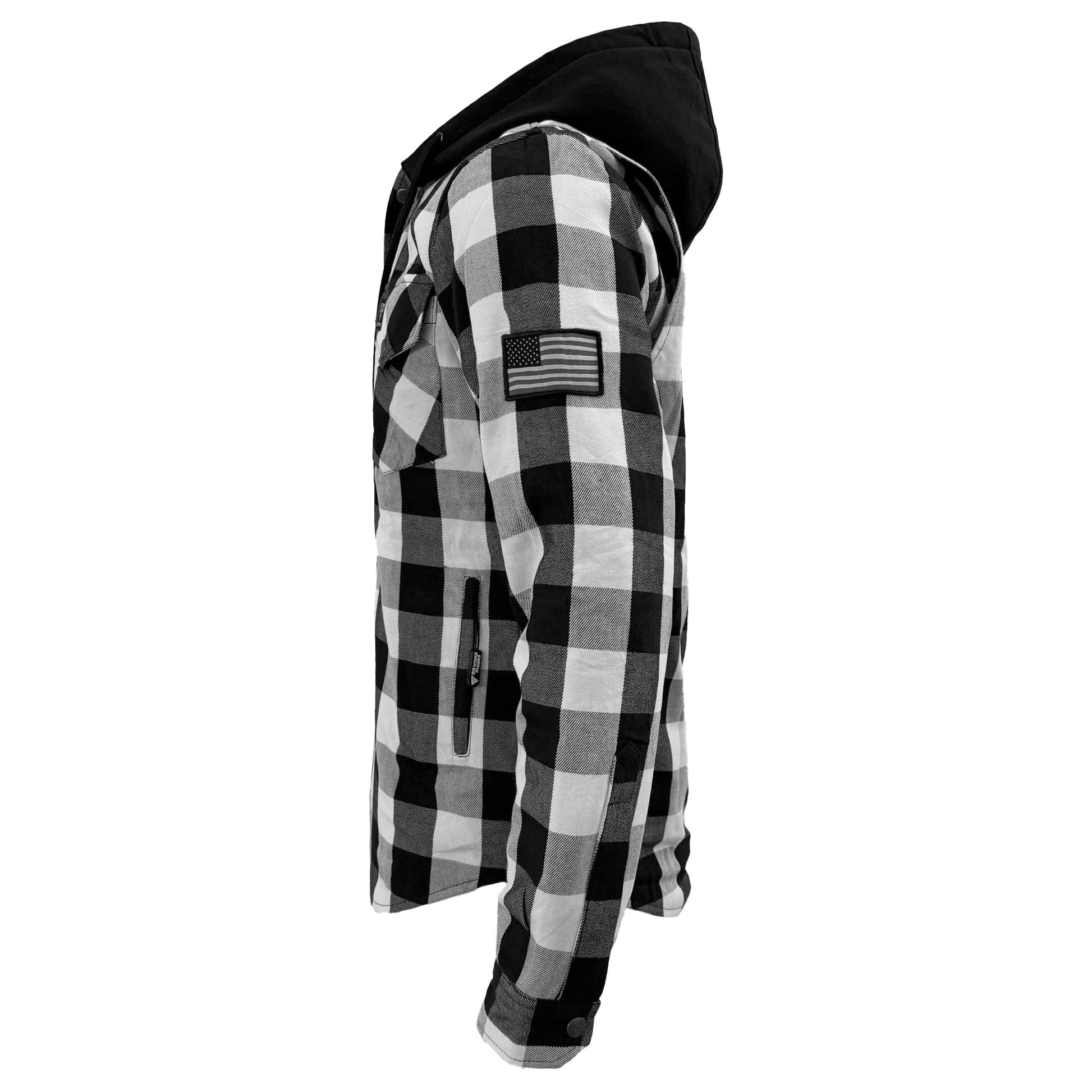 Protective Flannel Hoodie For Men - Black and White Checkered with Pads