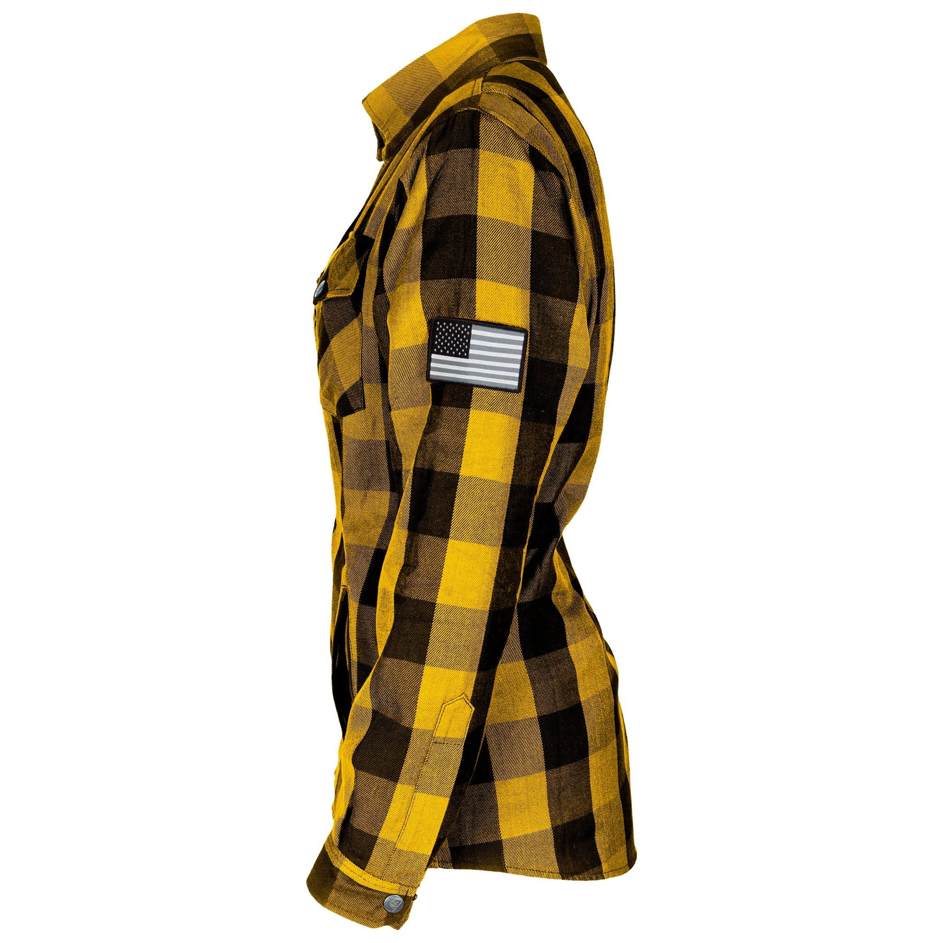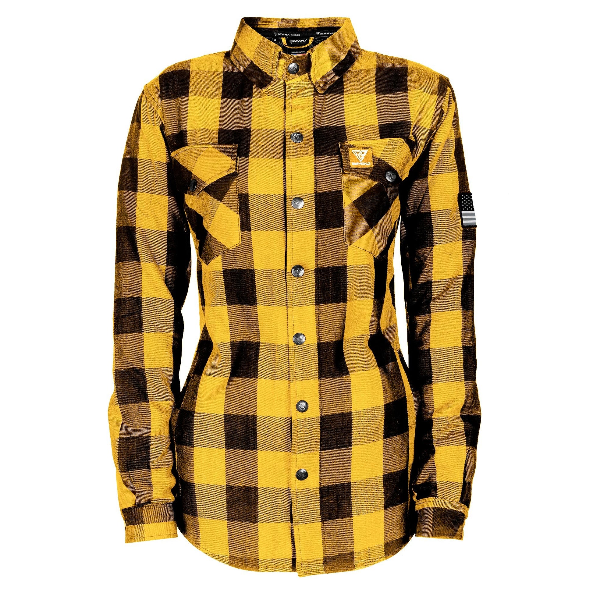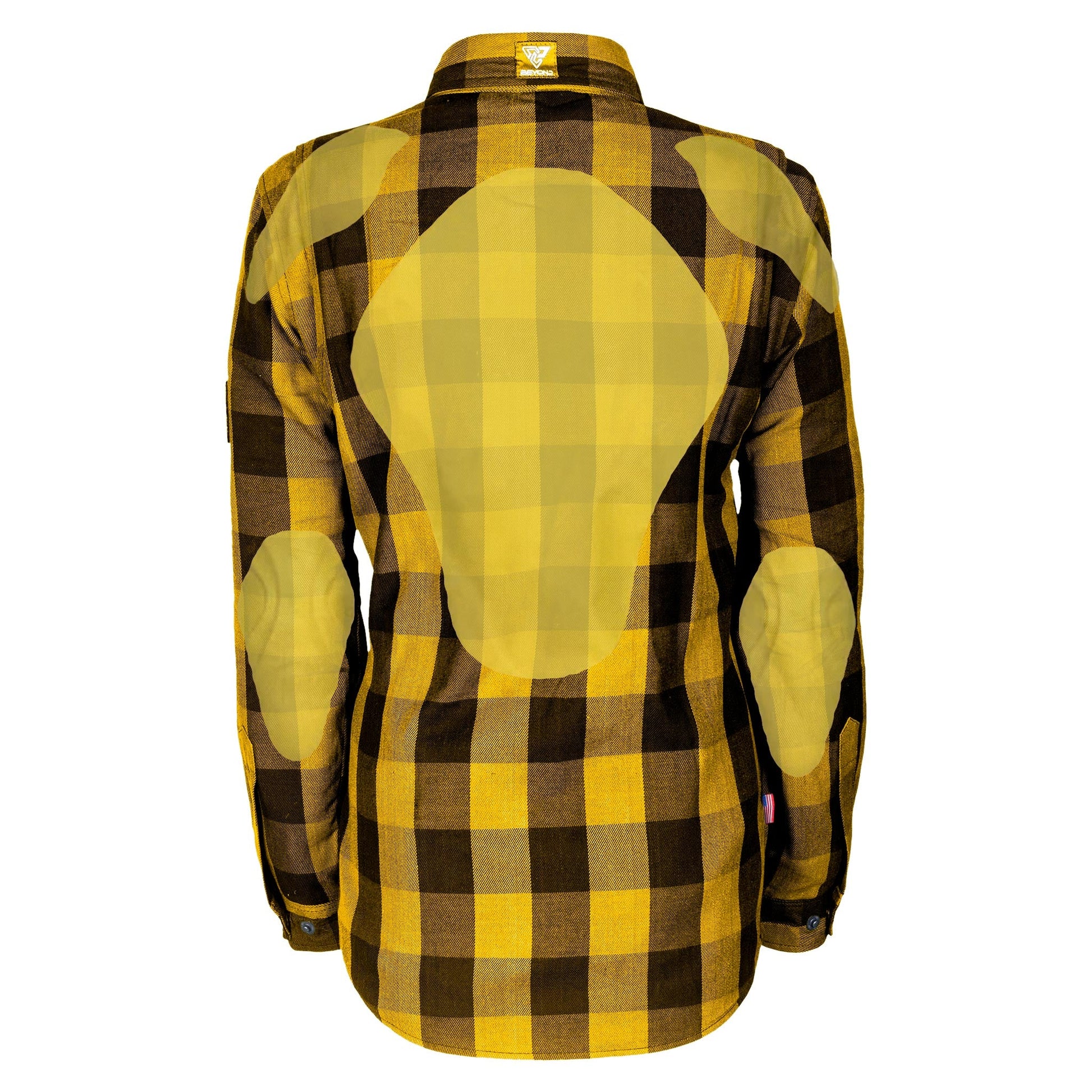 Protective Flannel Shirt for Women - Yellow and Black Checkered with Pads