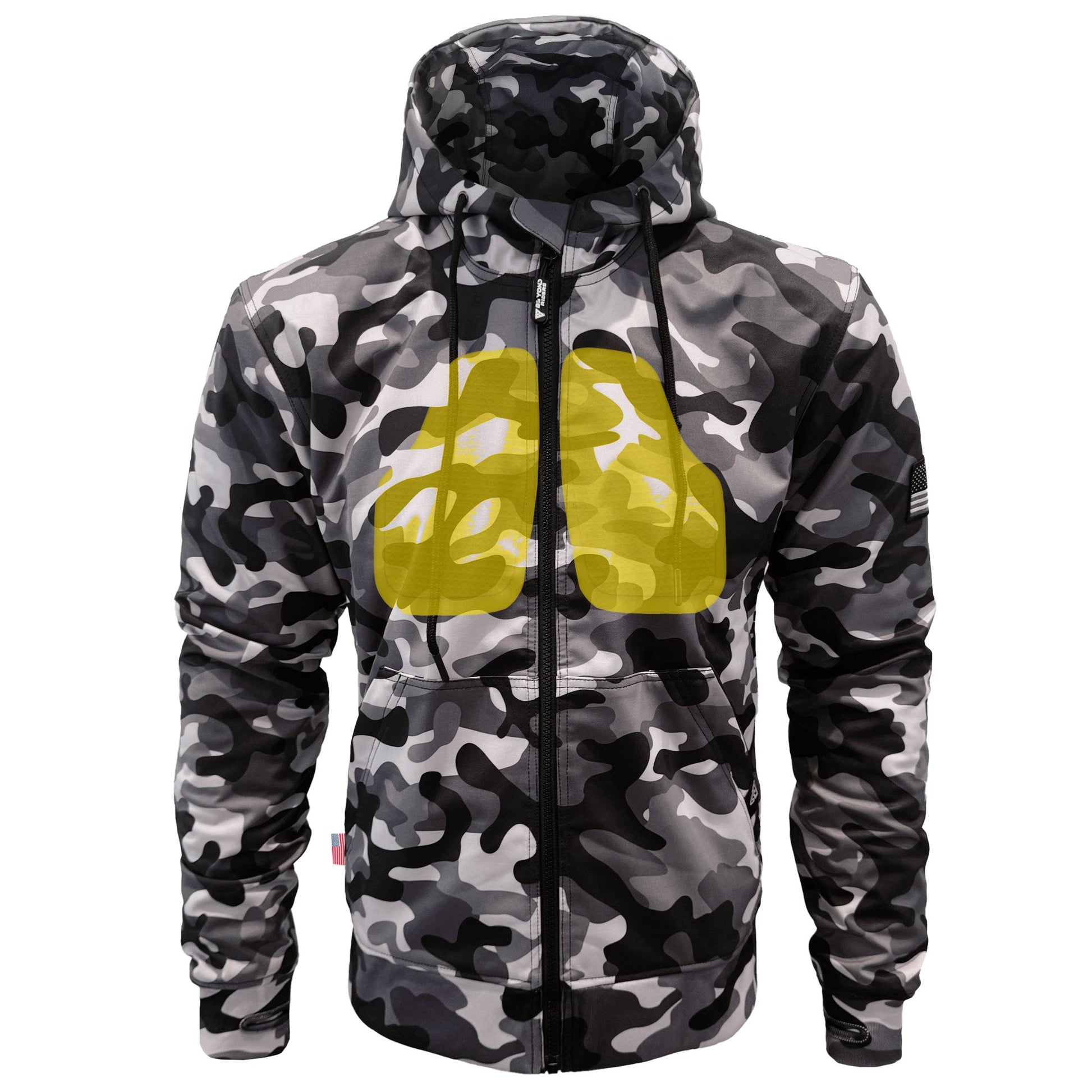 Protective SoftShell Unisex Camouflage Hoodie - "Grey Boomer" with Pads