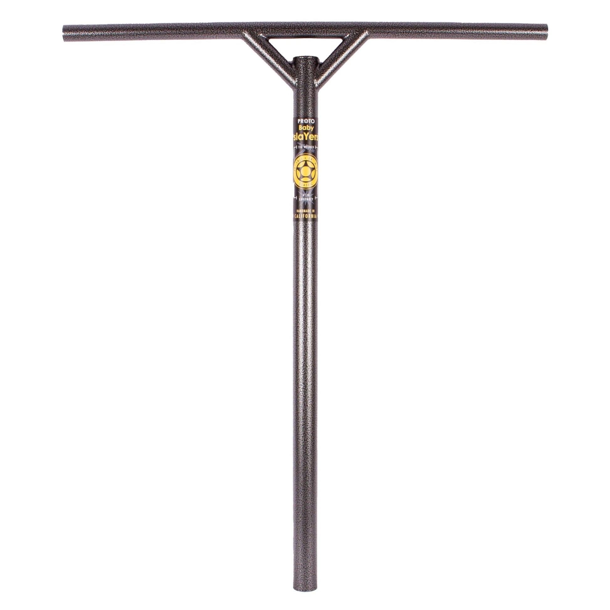 PROTO Baby slaYers are back!!! Much anticipated and long over due. The Baby brother of the handlebar that defined freestyle scooter handlebars is now available again for the first time in over 4 years! We took the design all the way back to its Classic roots with the smooth clean gussets TIG welded out of 4130 chromoly and 100% Manufactured in San Diego, California, USA, as always! 1-1/4” column, SCS, ICS & IHC compatible.