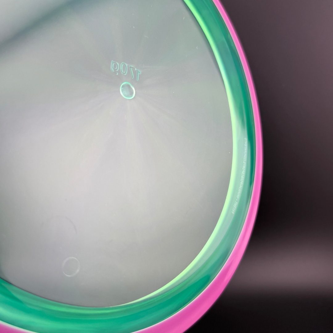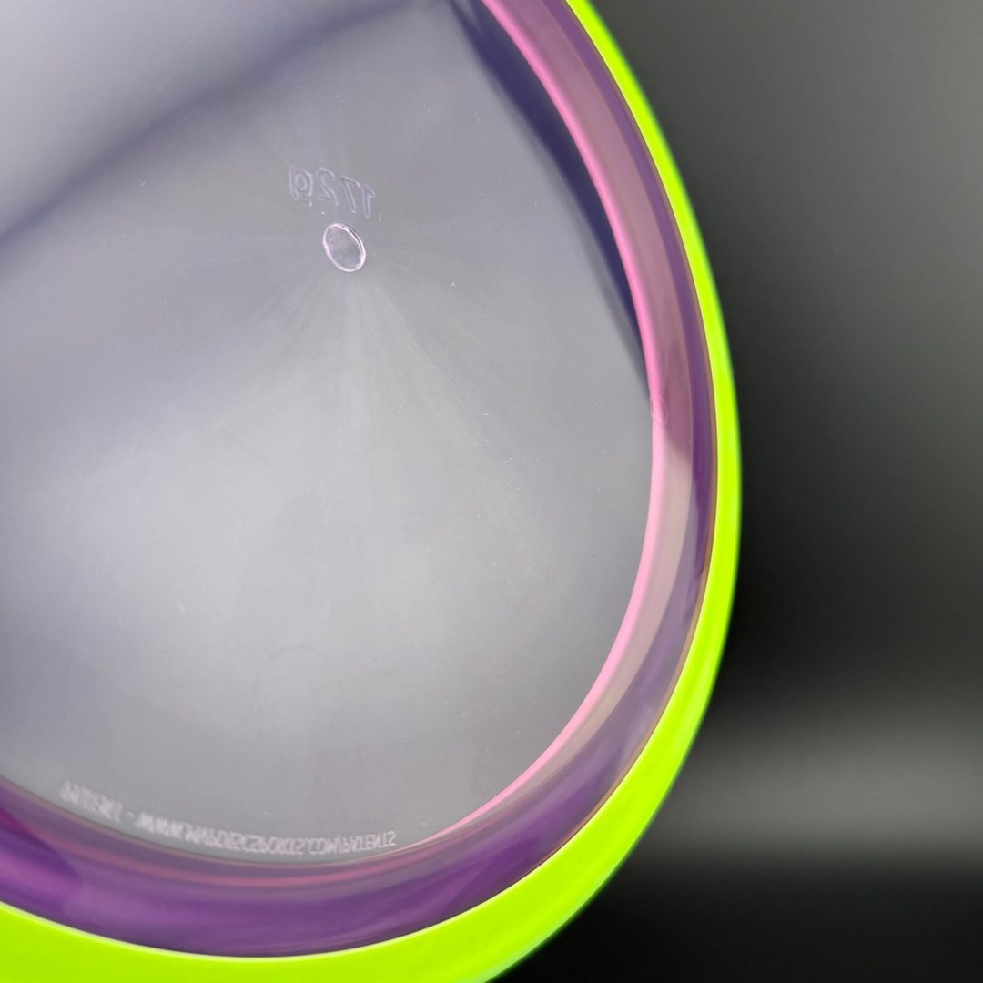 Proton is a beautiful and durable blend in the MVP line. Like all MVP discs, Proton has two separate plastics; a transparent flight plate in vivid colors, and a black solid outer rim.