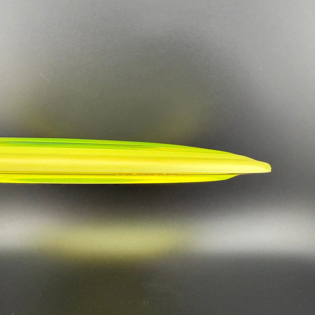 The Vanish is a straight to understable disc depending on the thrower and wind conditions. The Vanish’s stability profile places it near a threshold of being straight at low power or in tailwinds, and controllably understable at high power or in mild headwinds. As a 21mm class GYRO™ driver, the Vanish is designed to hit a midpoint of stability between two MVP Disc Sports models, the Wave and Orbital.