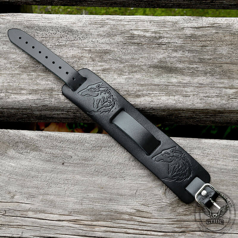 This statement punk wolf head bracelet is one of your must-have accessories. The wide wristband is made of soft leather for a comfortable fit. The embossed wolf head makes the whole bracelet more advanced. Layer it with a simple beaded bracelet and let the bracelet do the talking for you!