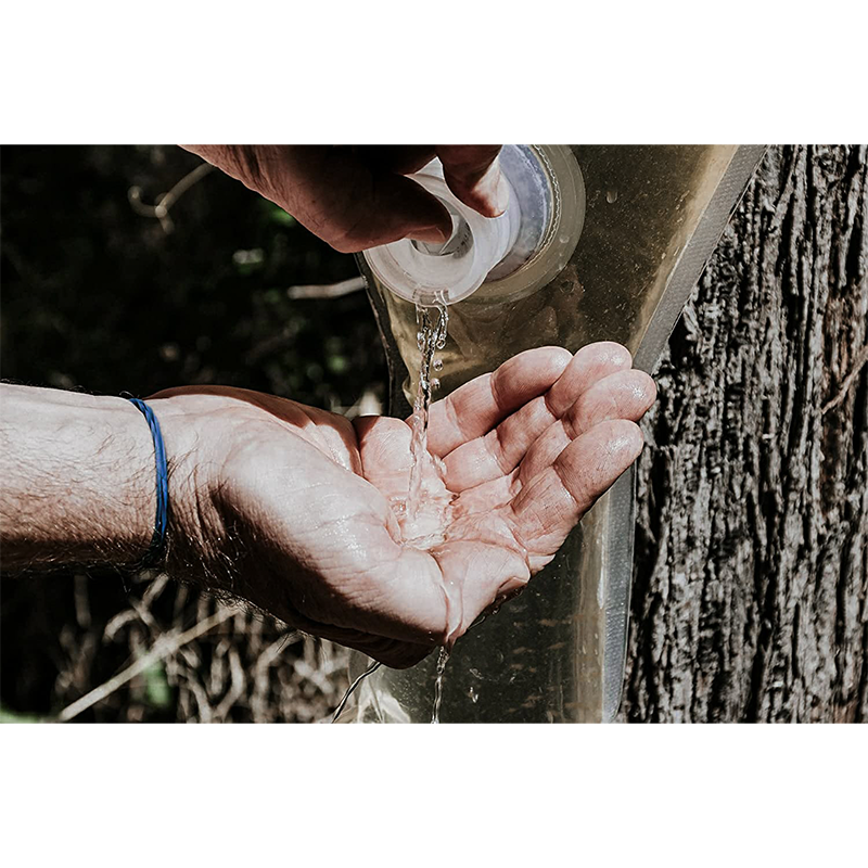 This Water Purification Kit is designed for easy transport and high water capacity. The unit is lightweight, weighing only 6oz when empty, and can carry 10L of water. It is also easy to use, with a quick treatment time of 30 minutes, making it a practical tool for mobile disaster relief.
