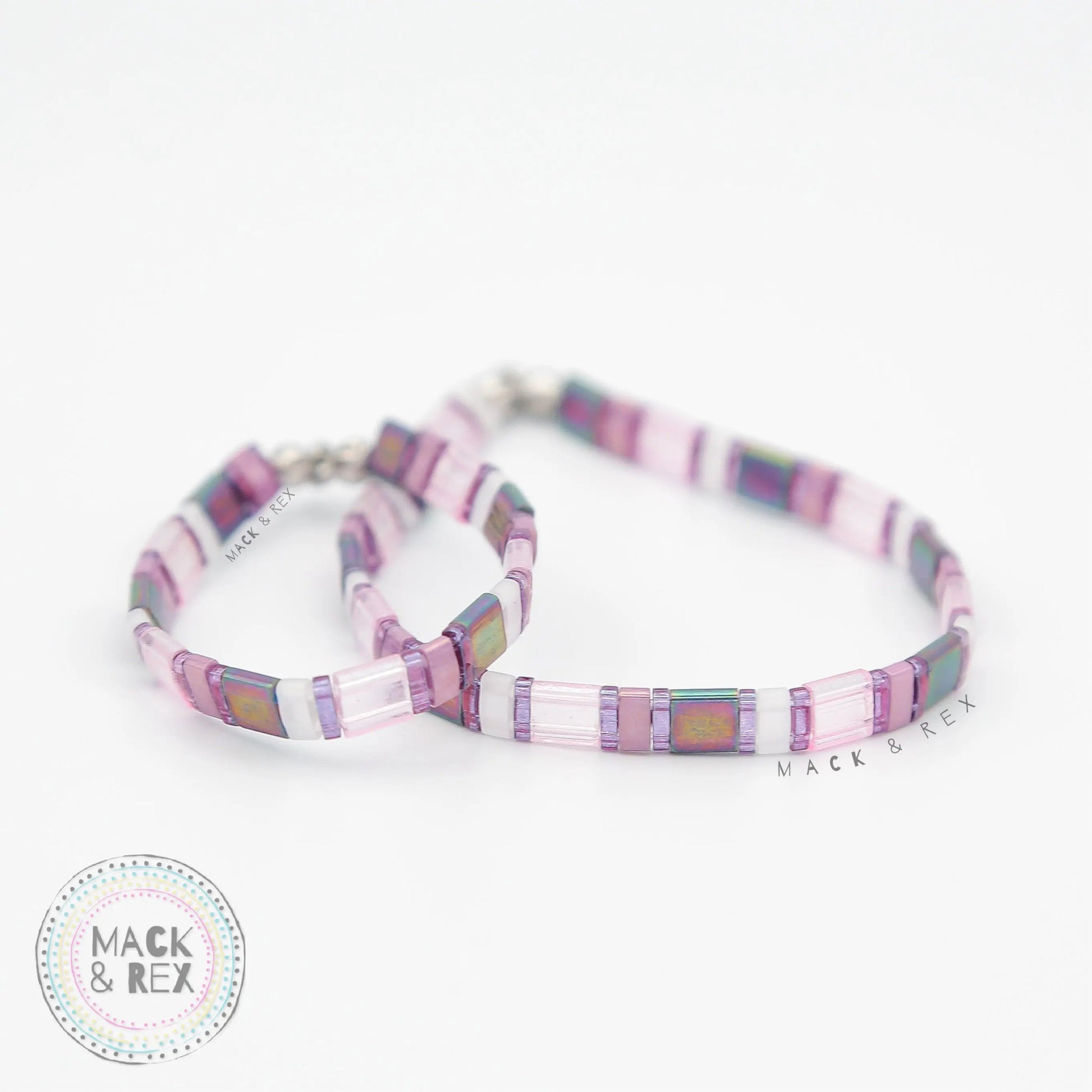 Tila Bracelets by Mack & Rex are NOT your typical beaded bracelets! We proudly back up our bracelets with a quality guarantee (yes, on stretchy bracelets!) and know that you will love them! They are made with an expensive crystal cord elastic, as well as glass tile beads from the top manufacture in Japan. In addition to being beautiful, our stretchy bead bracelets are: