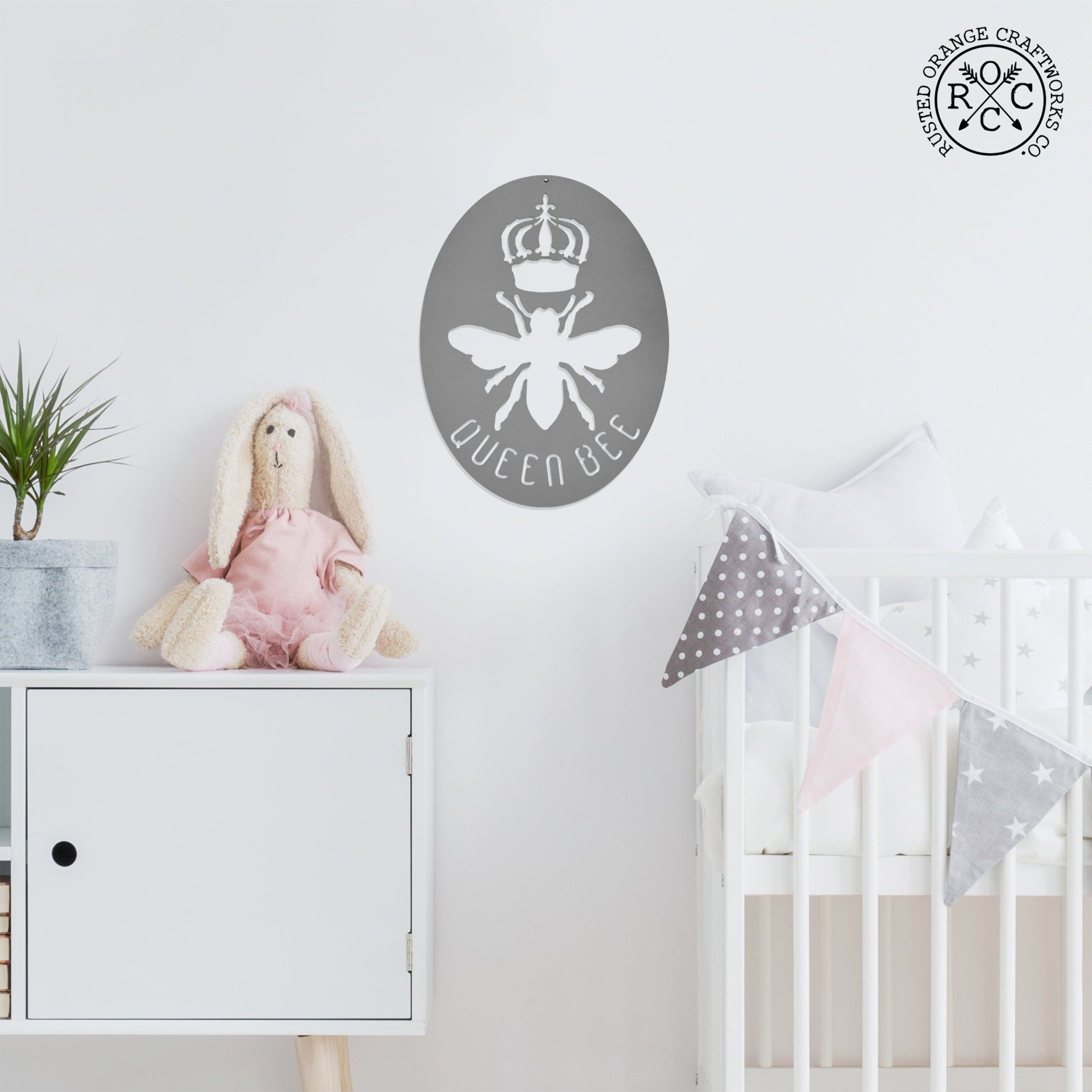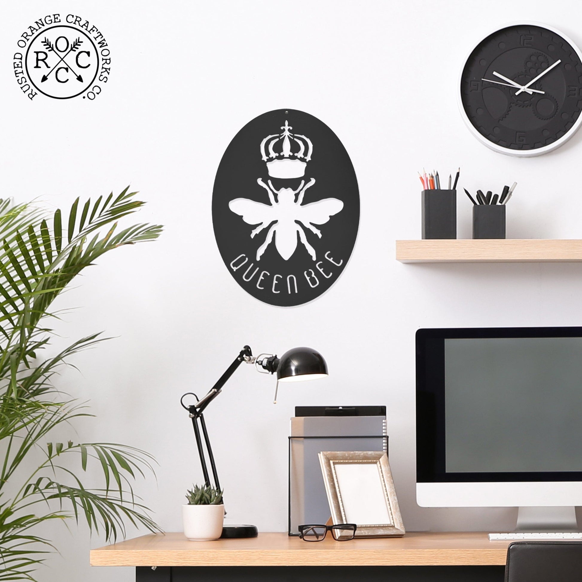 Lovingly Forged from Cold-Rolled Steel: Every Queen Bee sign is custom handcrafted in our Utah shop. Approximately 12" tall x 9" wide. The material used is laser cut steel and the edges are sharp (like our wit). We pour love and care into each handmade sign to make them worthy of representing your space. Hanging hardware not included.
