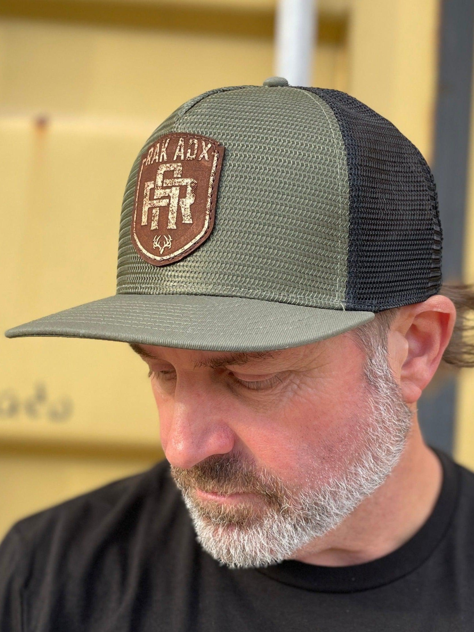 We took the snapback trucker game to the next level with the Mesh Overlay 5-Panel Trucker Snapback decorated with a very cool "RA" Branded Leather Patch, hand sewn to the front. This is our September 2022 Club hat.