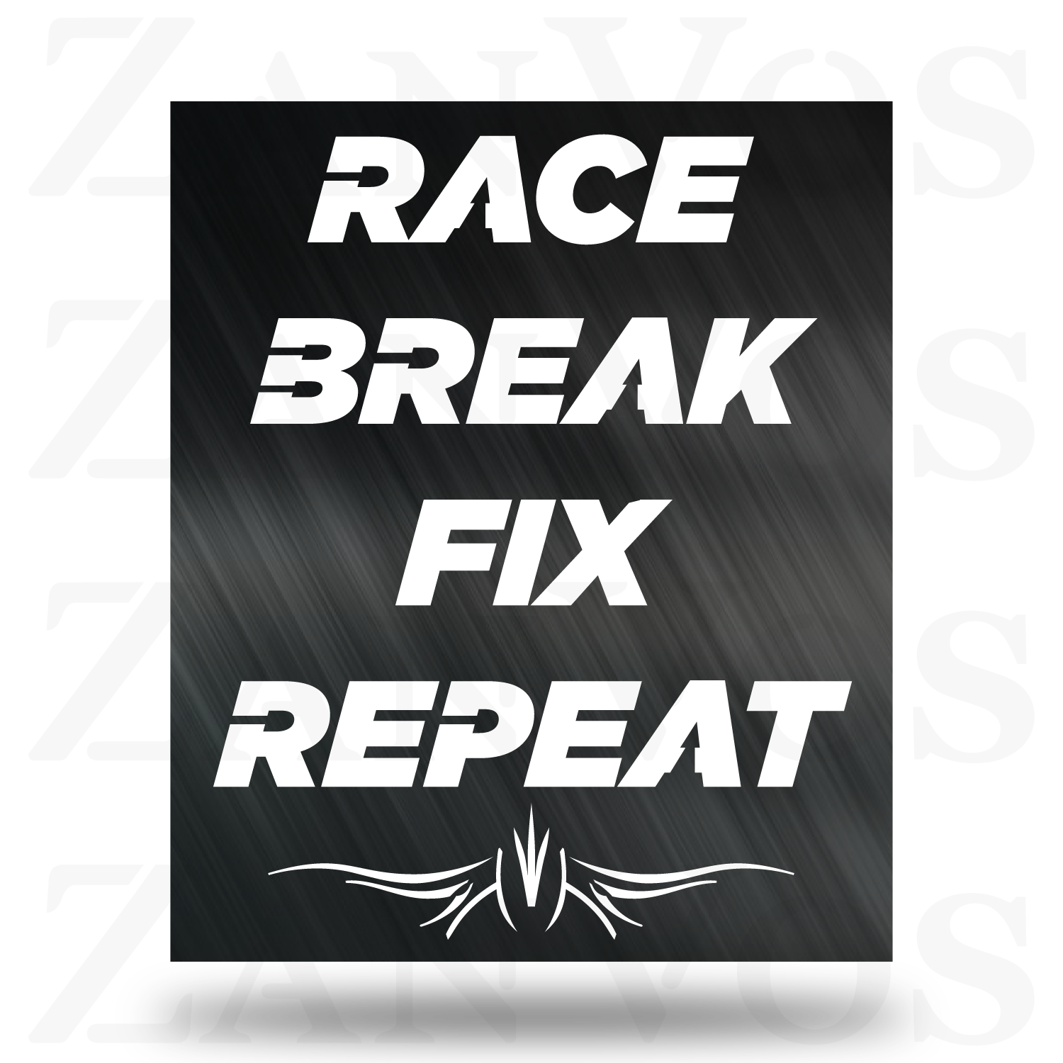 Made from durable 16-gauge steel with a powder-coated finish, this metal art sign celebrates the passion of racers everywhere. Featuring the bold message "Race, Break, Fix and Repeat," it’s a perfect addition to any racing enthusiast’s space, inspiring perseverance and dedication through every lap and repair.