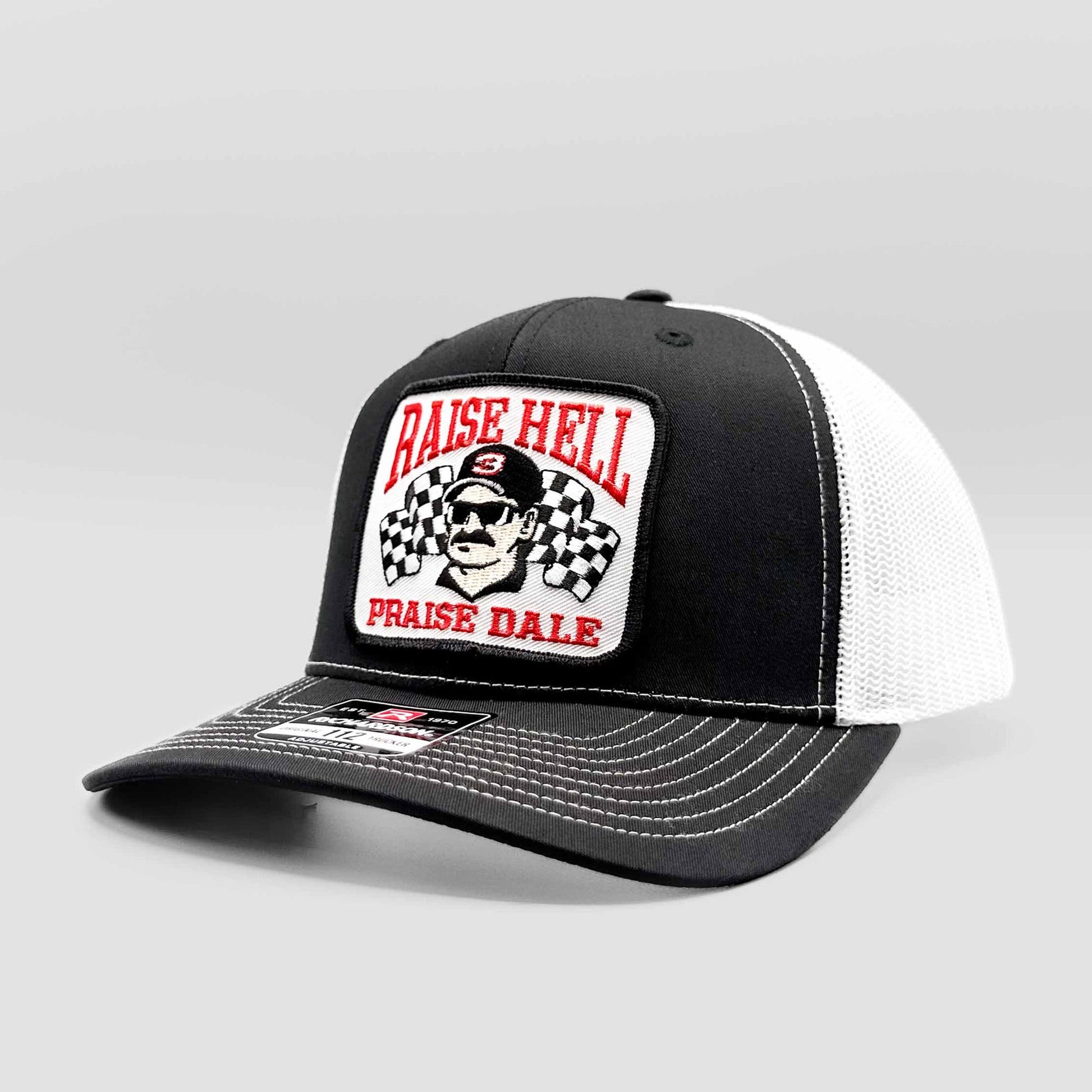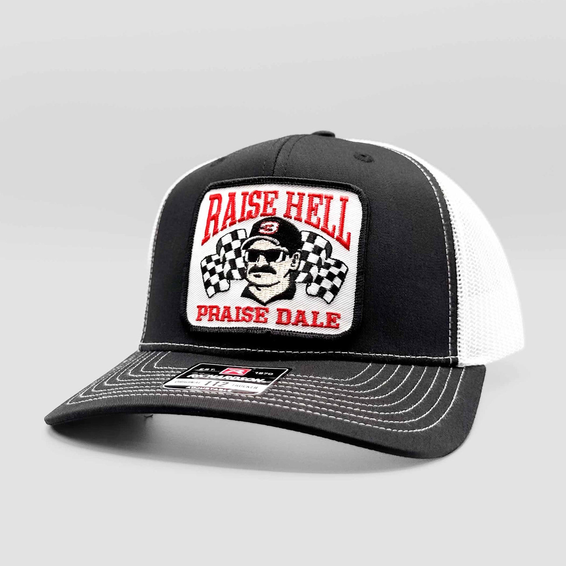 This trucker hat features a red and black Raise Hell, Praise Dale Earnhardt, Sr. embroidered patch on a premium Richardson 112 mid-crown, mesh snapback trucker hat. This is the Richardson 112 version of our Raise Hell Praise Dale Earnhardt Sr. patch hat and is the perfect gift for Dale Sr, the "Intimidator" fan in your life.