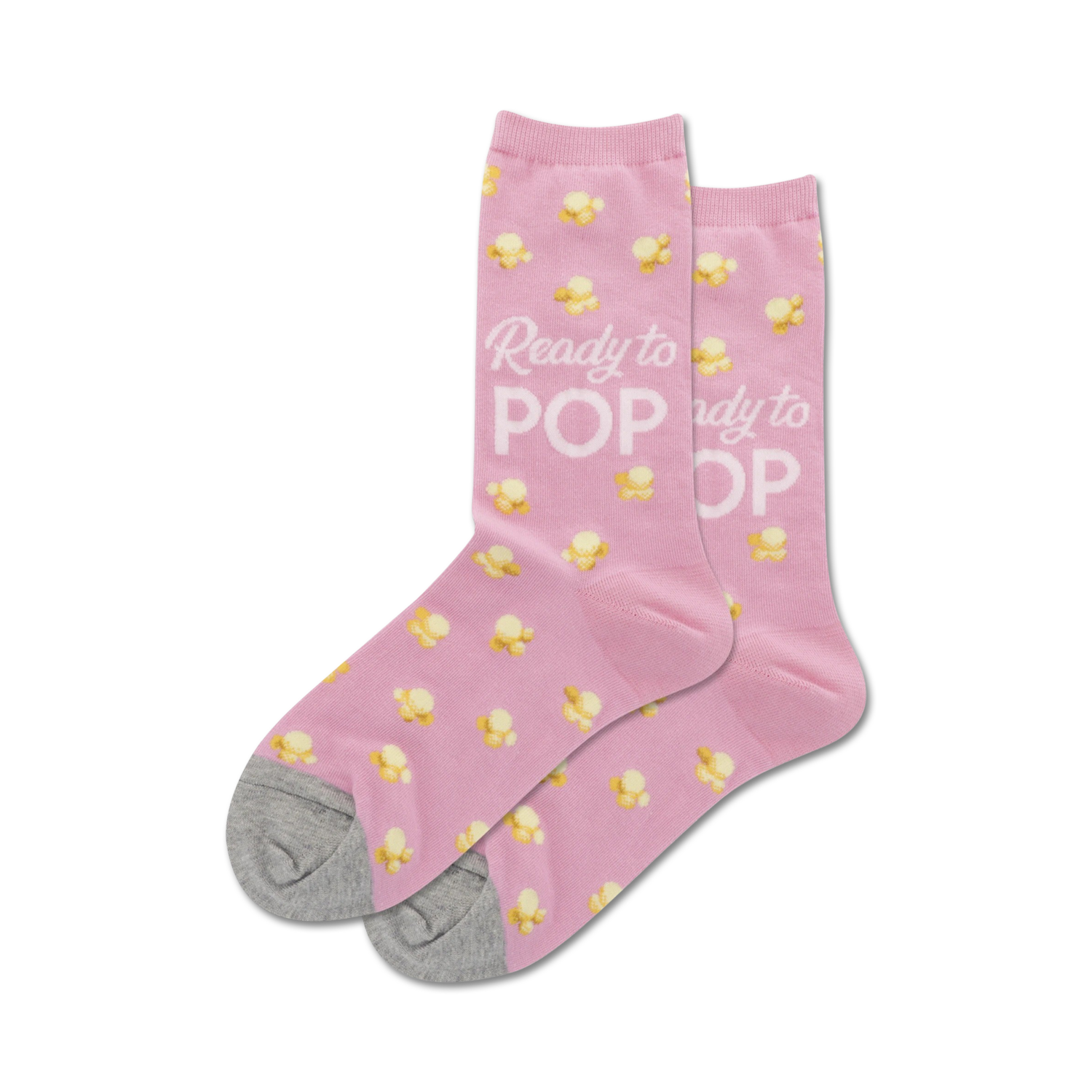 These "Ready to POP" socks are bursting with fun! Show off your popcorn pride with these bold pink women's crew socks. Corn-y jokes optional.