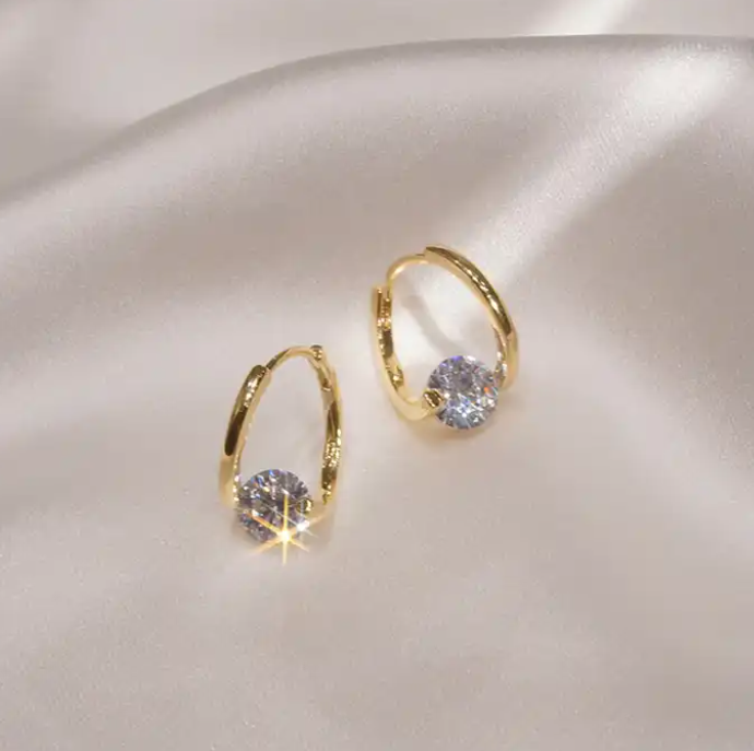 Our Reina earrings are made from sterling silver or sterling silver plated in 18k gold and finished off with a beautiful zircon. The hoop looks continuous, and you will constantly get compliments when wearing our Reina earrings!