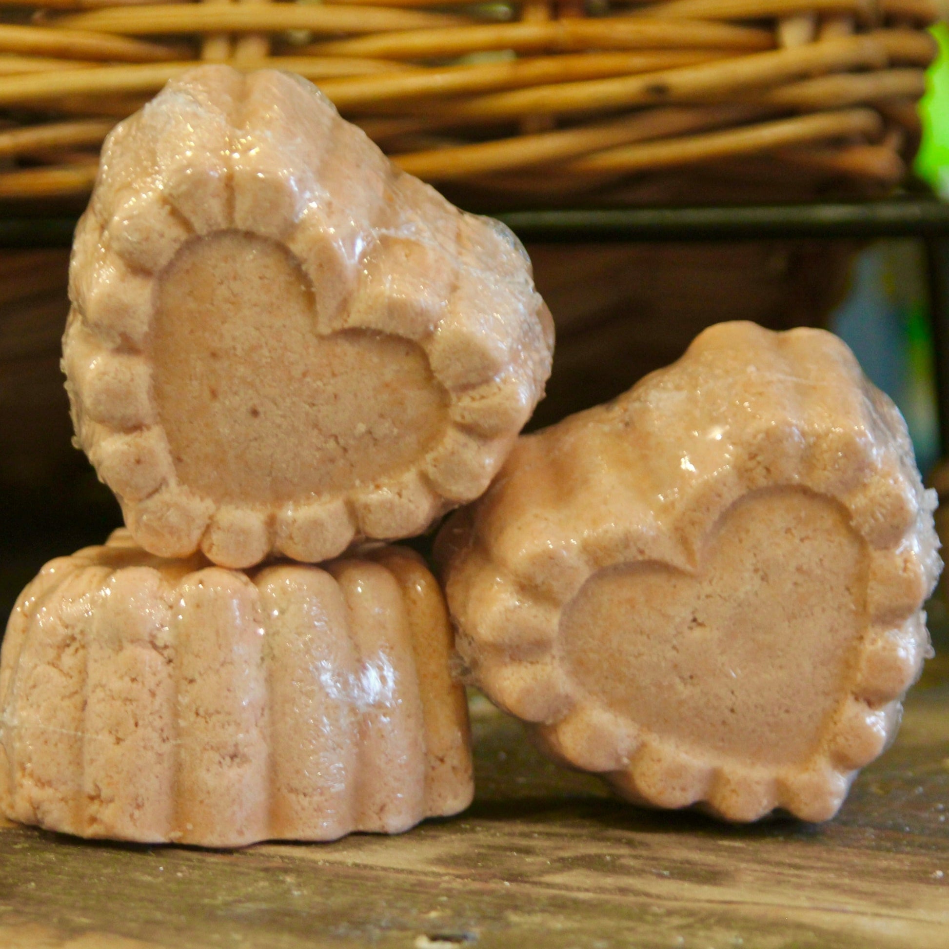 Each one is handmade with moisturizing shea and mango butters to soften and pamper the skin, and 100 percent pure essential oils that sensually perfumes the skin. Like all of our bath and body products, they are completely natural, use only sustainable ingredients, and are gluten-free. These are also vegan.