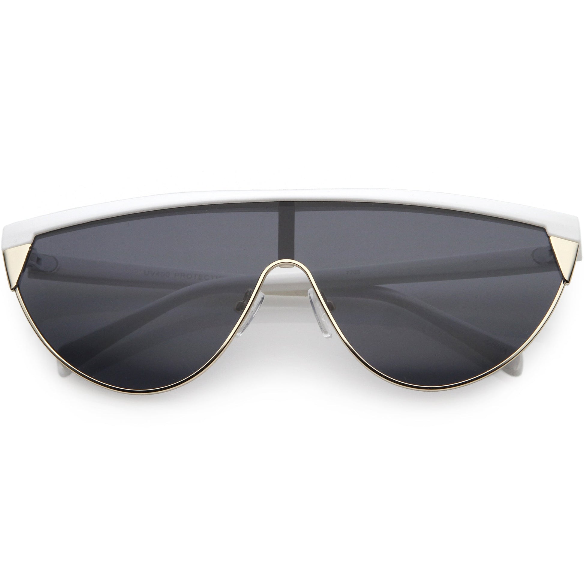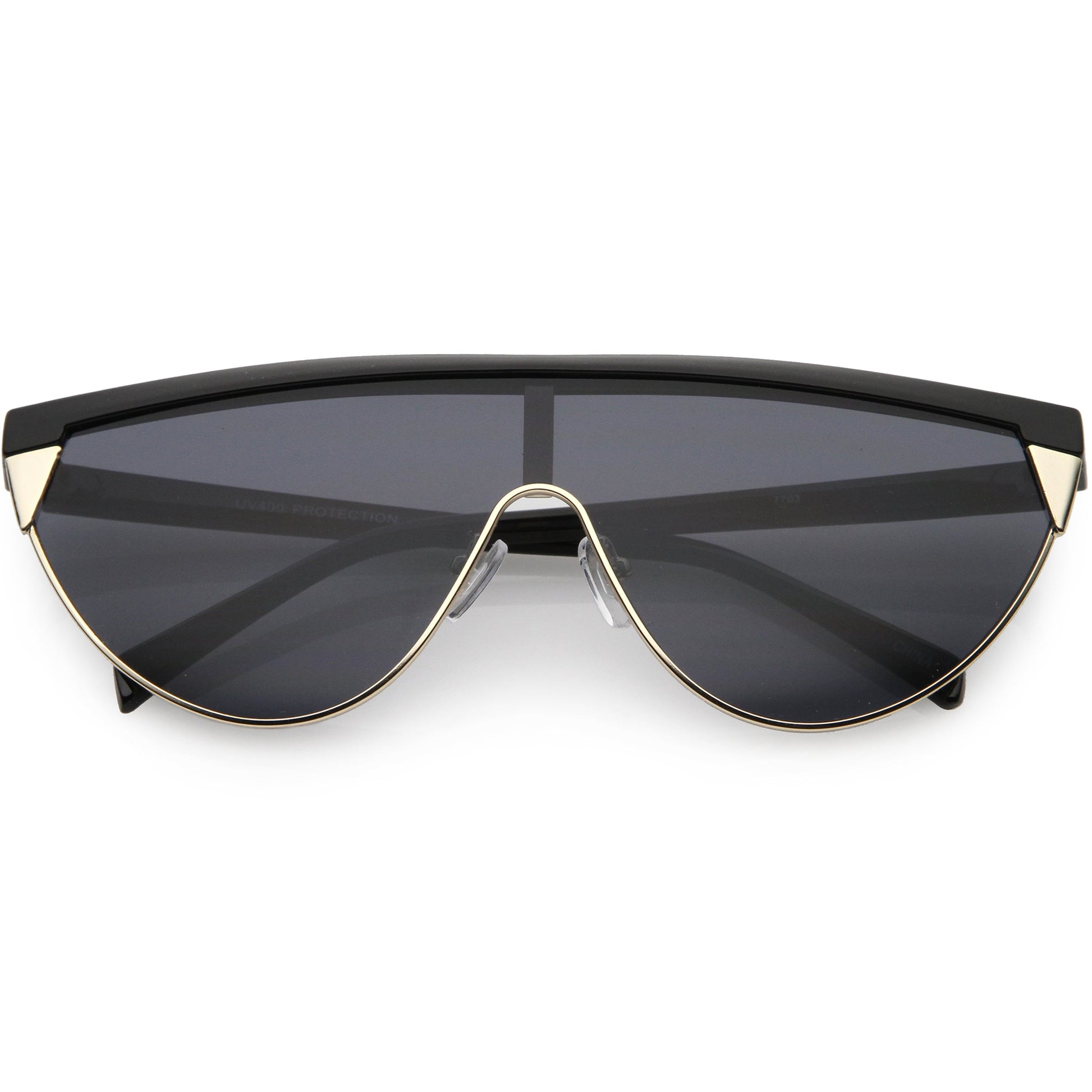 - Radical blade mono shield sunglasses. Take a trip back in time with these excellent retro modern flat top frames. Complete with light metal accents and 100% UVA and UVB protection.
