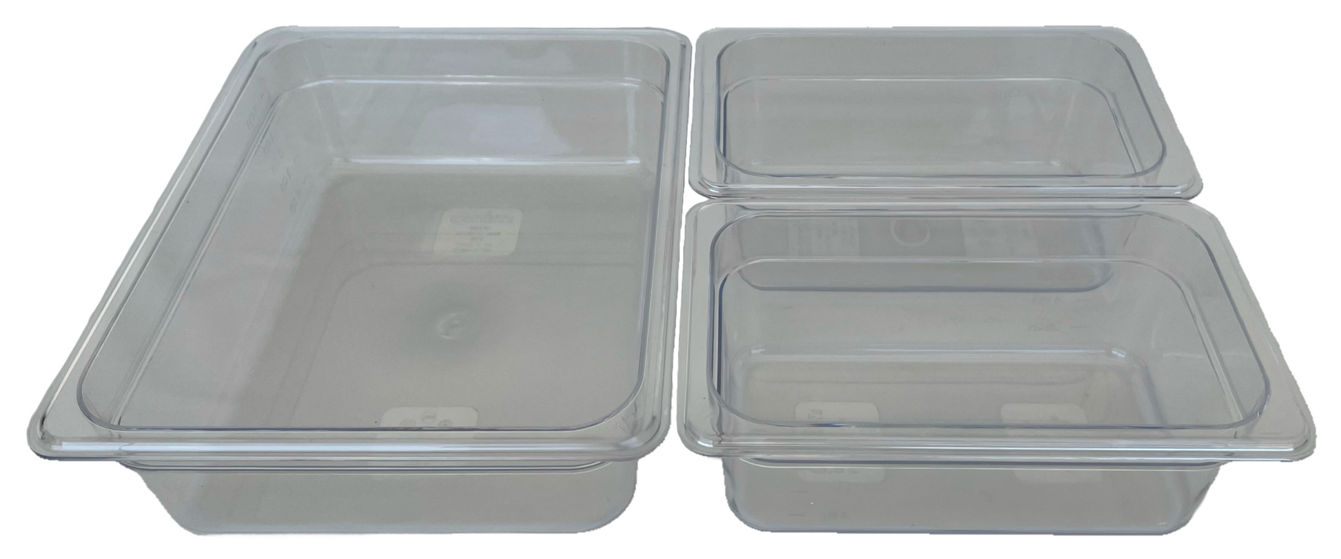 REVO MIX Pan Set | Polycarbonate 4" deep | One 1/2 Size and Two 1/4 size food pans
