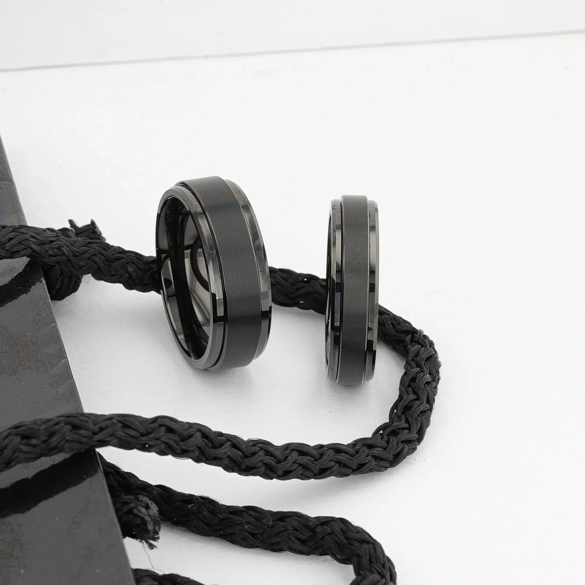 REVOLVE Black Tungsten Spinner Ring, Brushed Center on Polished Base – Comfort Fit (6mm & 8mm)