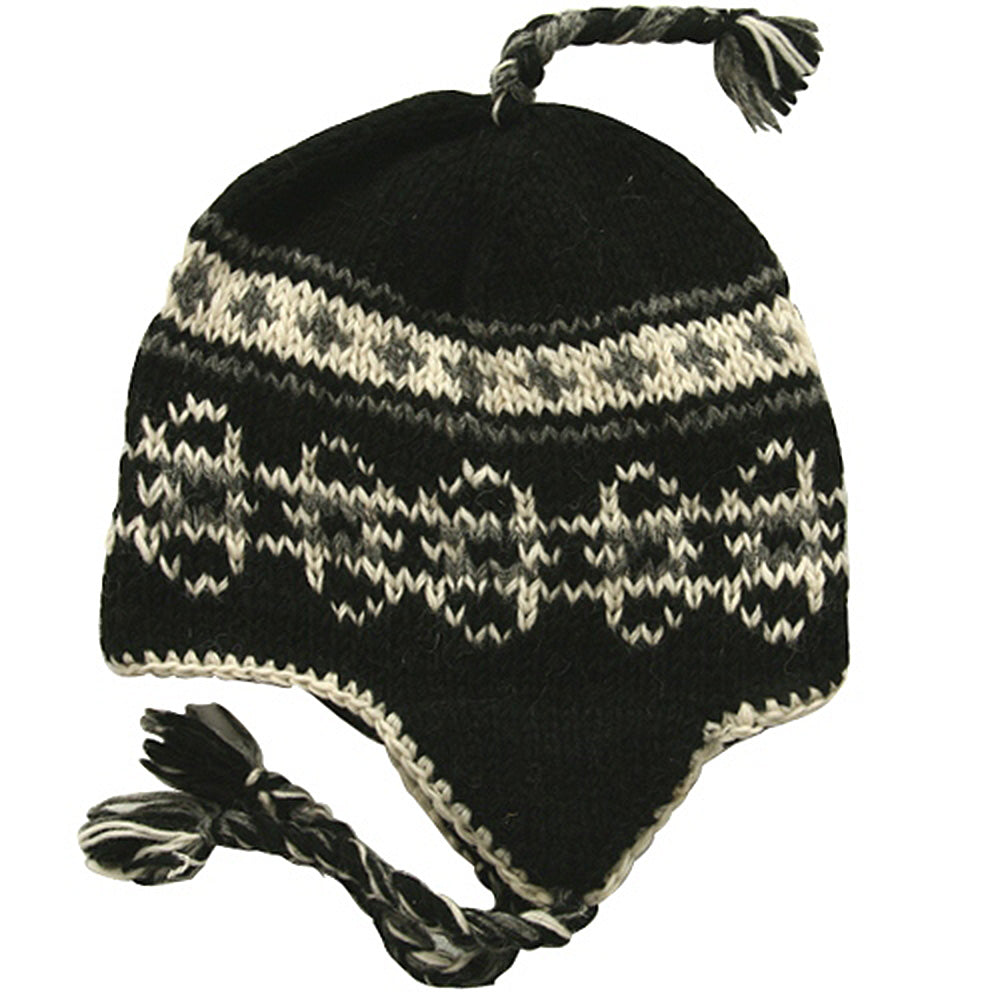 Earflaps, Features triangular earflaps with braided ties for fastening