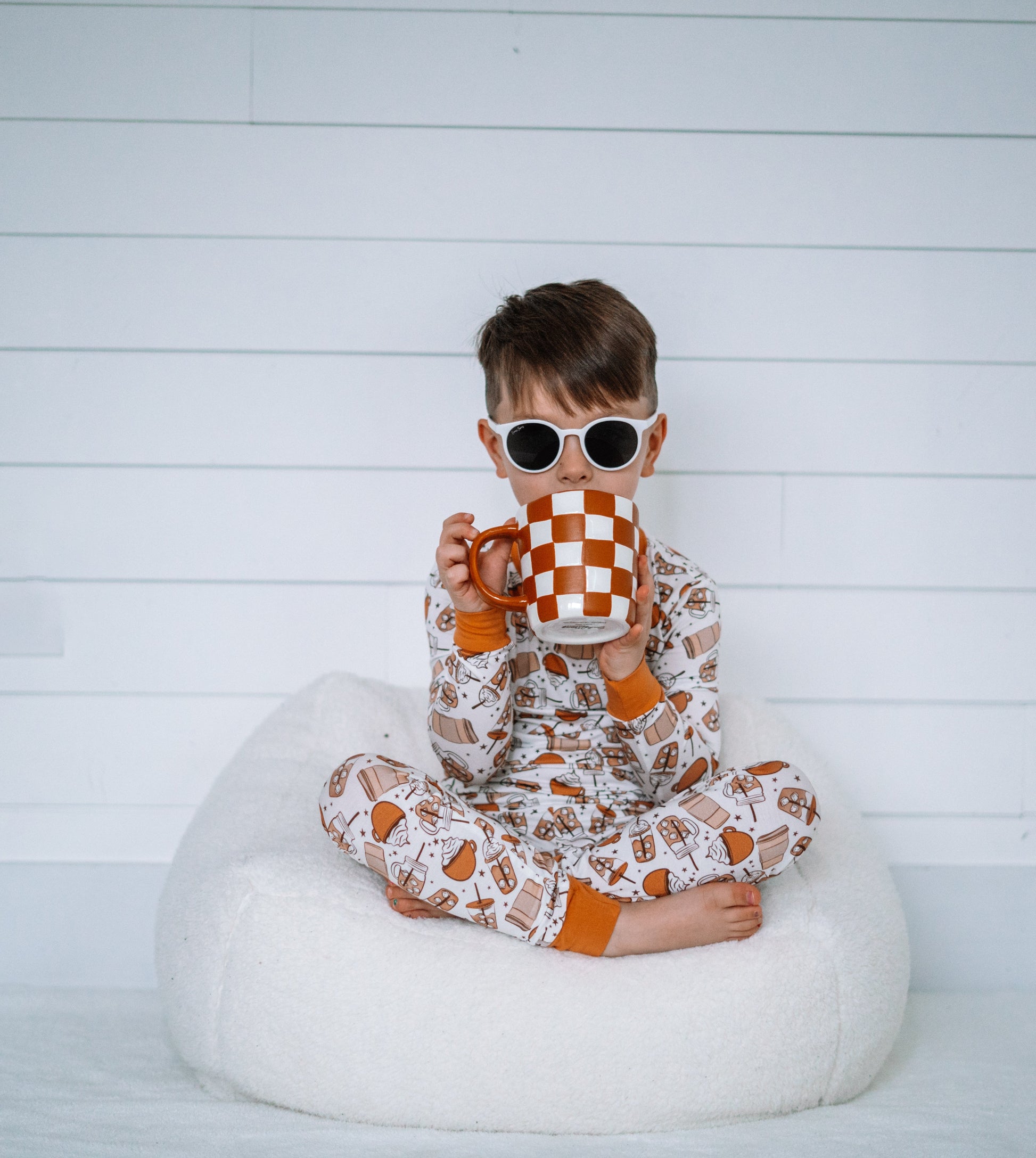 Get your grind on with our Rise and Grind Dream Set! Perfect for coffee lovers, this long sleeve set is as fun as it is soft. Enjoy your iced coffee or cappuccino in style, whether you're sleeping or playing.