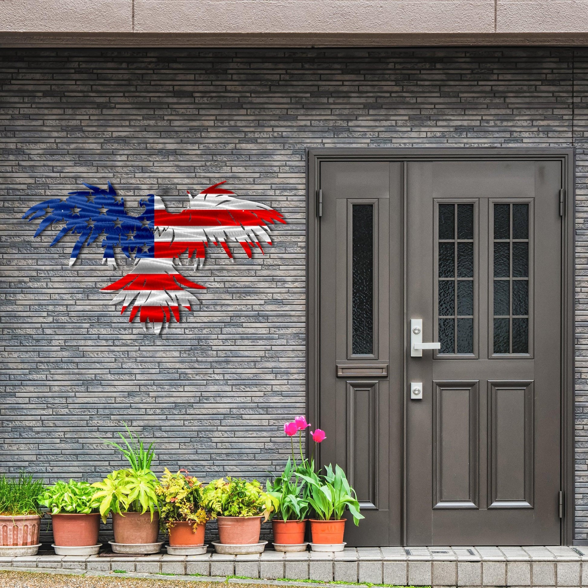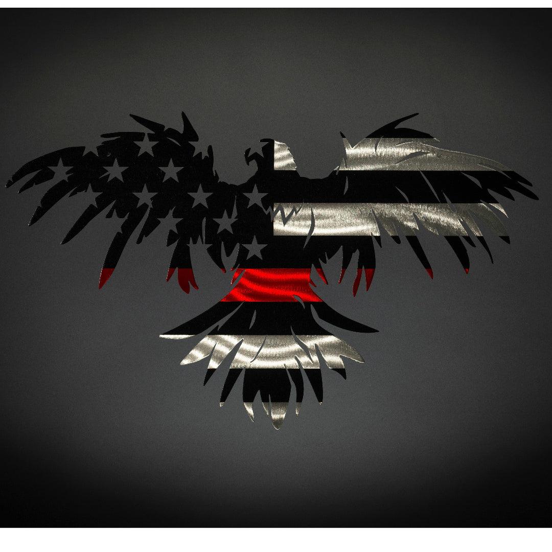 Add a touch of luxury and pride to your walls with the Rising Eagle American Flag. This stunning piece of hand ground metal art is crafted from high-quality 1/8" aluminum and boasts vibrant colors. Featuring a unique grinding technique, enjoy the mesmerizing movement and light reflectivity that is sure to catch the eye. A perfect gift for any proud American. Brought to you by expert American craftsmen, proudly made in the USA. Outdoor durability coating and/or personalization may be added for an additional cost.