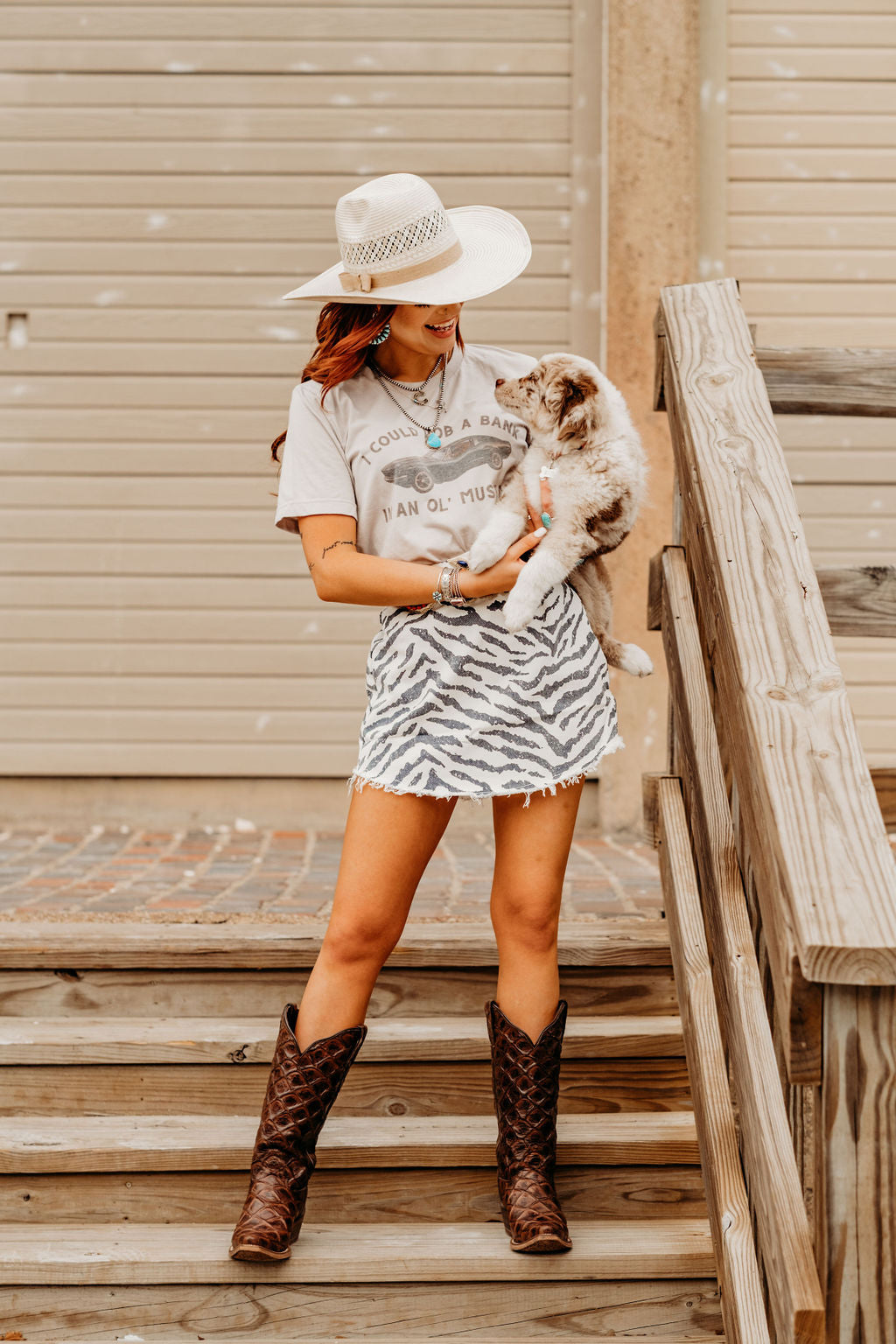 You’ll give everyone something to talk about in our new Koe-inspired Rob A Bank Graphic Tee! This cool mustang graphic makes this tee the perfect concert tee or even for a fun night out on the town.
