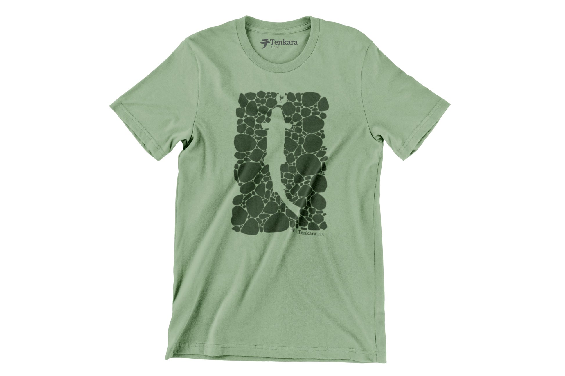 This design embodies tenkara. The elegant graphic, line and shape style developed by Jeremy Shellhorn has become an integral part of our branding for it shows that tenkara is simple. It reinforces the words written by Sebata-san, the angler becomes a part of the mountains effortlessly and unencumbered.