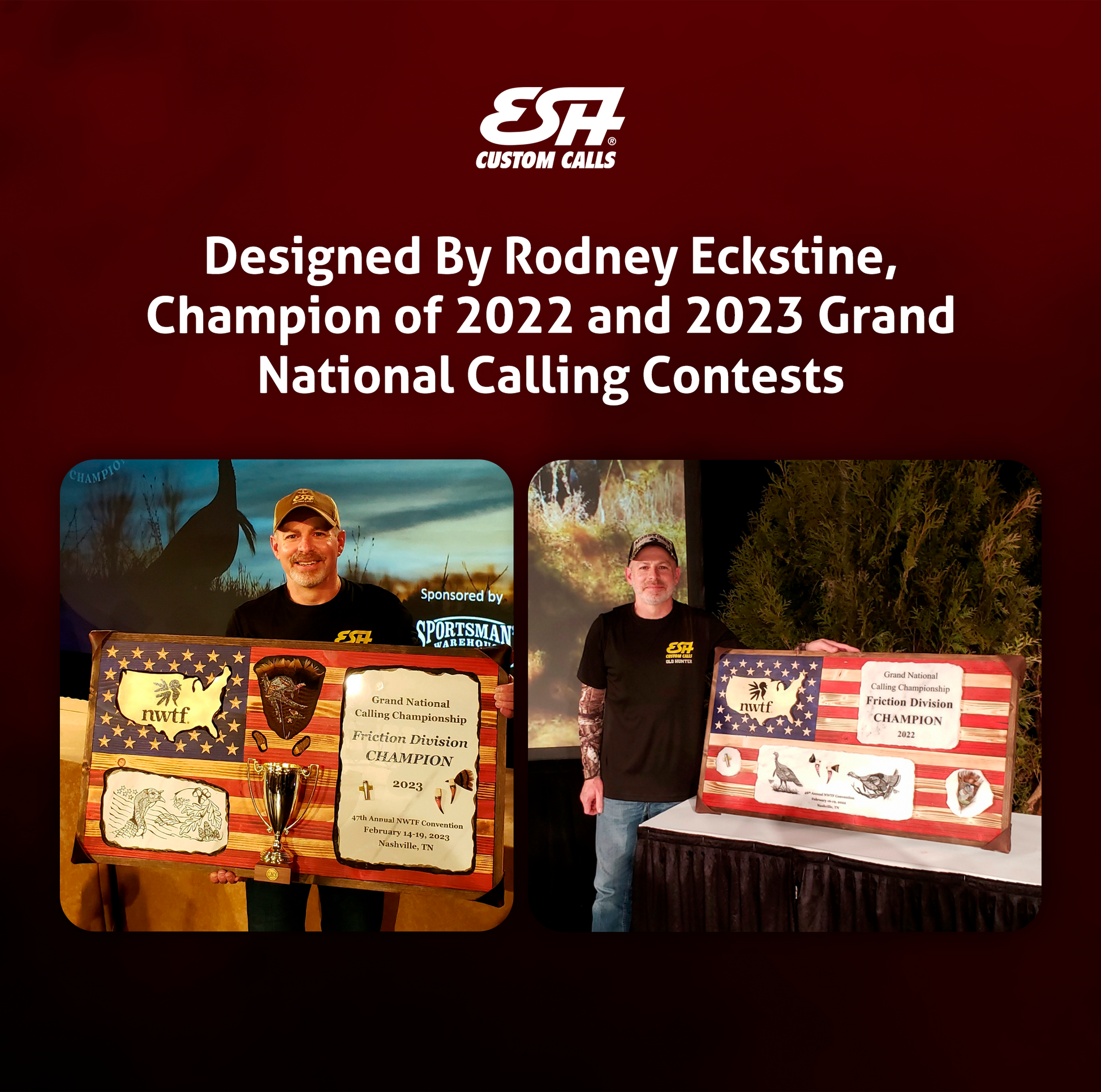 Rodney Eckstine, a 20-time Major Calling Champion and a turkey hunter for over 40 years designed this signature call, “Rod’s Red Double”. This call is a solid padauk pot with a glass surface on the frontside and a black slate surface on the backside. Padauk is a favorite choice by Rodney that produces full bodied yelps, clucks, and cutts along with clucks & purrs and soft yelping on the back. We take great care in bringing you handcrafted specialty calls built for generations of use.