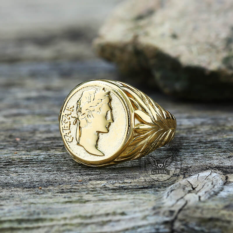 The face of the piece is crafted with the image of Gaius Julius Caesar who wielded his power to enlarge the senate, created needed government reforms and decreased Rome’s debt. At the same time, he sponsored the building of the Forum Iulium and rebuilt two city-states, Carthage and Corinth. This Julius Caesar signet ring has a commemorative meaning, get yours today!