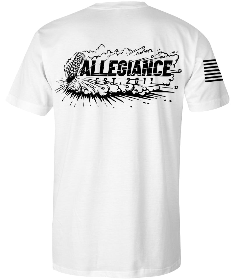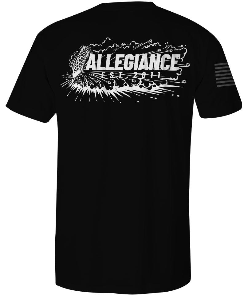 Introducing the Allegiance Roosted Tee! This eye-catching shirt is sure to turn heads, with its striking Roosted logo screen-printed small on the front, large on the back, and a vivid American flag printed on the sleeve. Made from 100% cotton, it's comfortable to wear, and can be machine-washed for easy care. Plus, it's proudly made in the USA. Whether you're looking for casual everyday wear or activewear, this shirt is a great choice. It has a relaxed, loose fit that will keep you feeling comfortable all day long. Add the Allegiance Roosted to your wardrobe today!