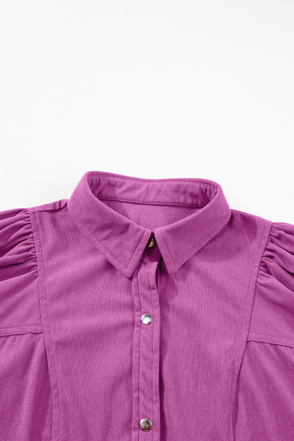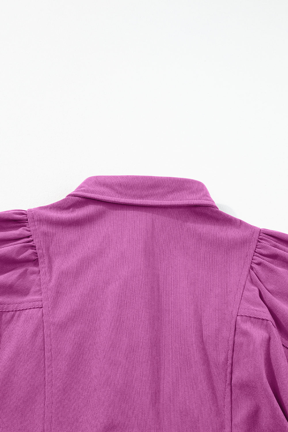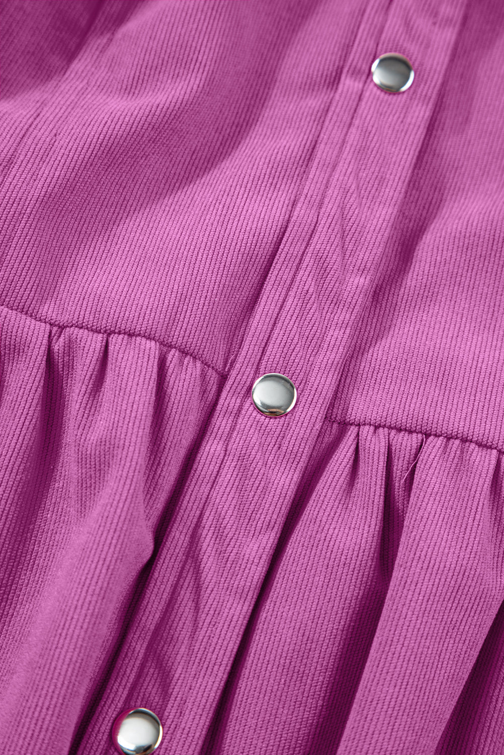 Rose Red Corduroy Puff Sleeve Collared Babydoll Dress