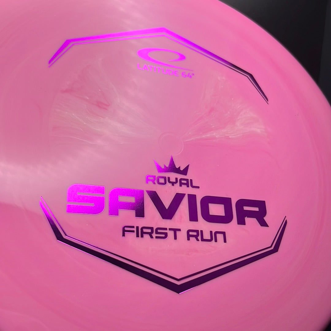 The Savior was designed to fill the gap in our disc lineup as an overstable approach disc. The disc is a bit of a hybrid between a midrange and a putter, resulting in a ‘neat’ grip and a flat upper surface ideal for forehand shotsRoyal Grand is our durable premium plastic with great grip that will not fail you, no matter the outside circumstances. It features a soft feel with a rigid rim part with perfect flex. Furthermore, the Latitude 64¬∞ Royal Line takes disc golf quality one step further the innovative NexEdge and NexFeel technologies. The days of sharp flashing are gone as the NexEdge process provides a buttery-smooth feel to the bottom and outer parts of the rim. NexFeel is our new polish technology enhancing the grip and feel of the whole disc surface. Want the best? The Royal discs are made for you.